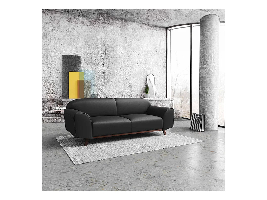 Canapé 3 places bois noyer et cuir Kilane-Couleur Aqua 90 Noir