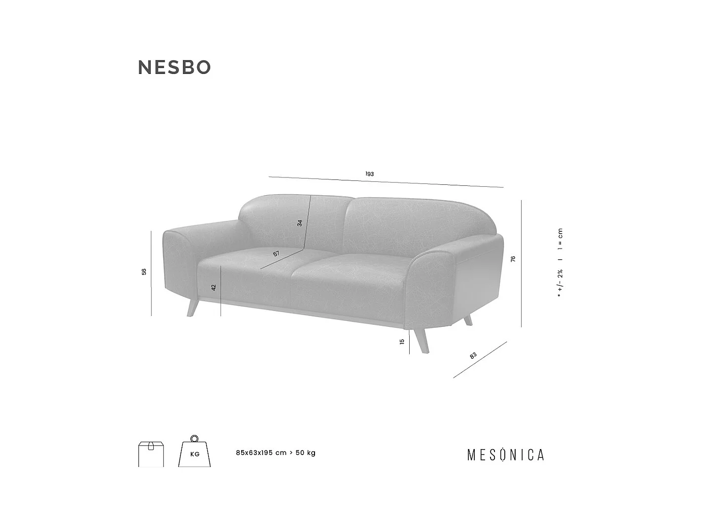 Canapé 2 places en 100% tout cuir italien vachette COMO, noir