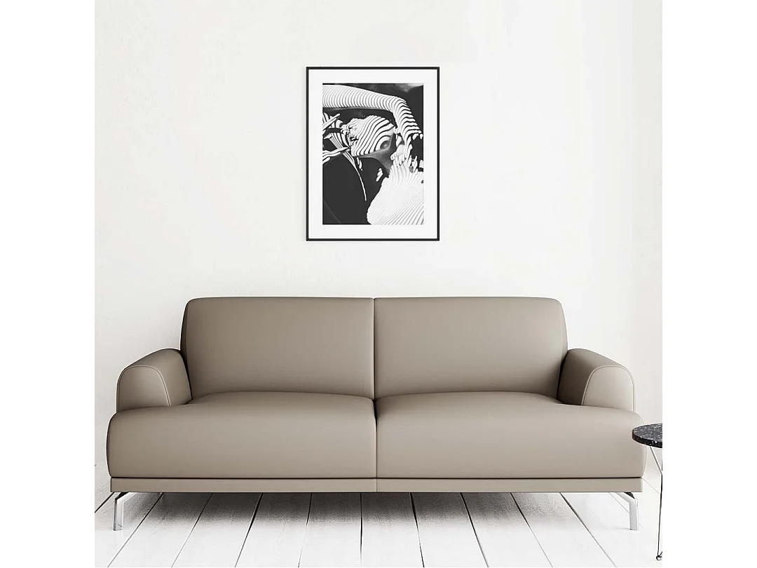 Canapé 2 places cuir et pieds bois noyer Kina-Couleur Cuir Piel perla