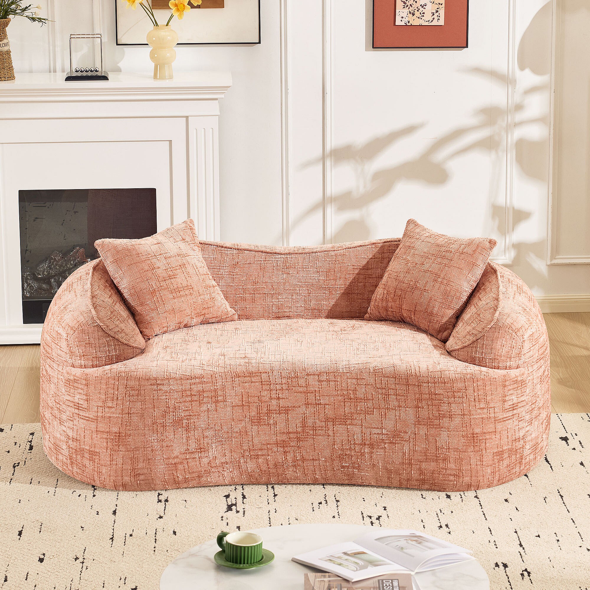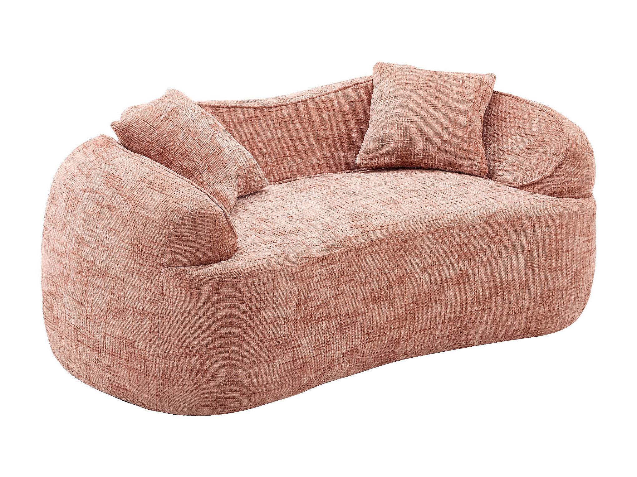 Canapé 2 places rose - Canapé droit avec 2 coussins et accoudoirs - chenille
