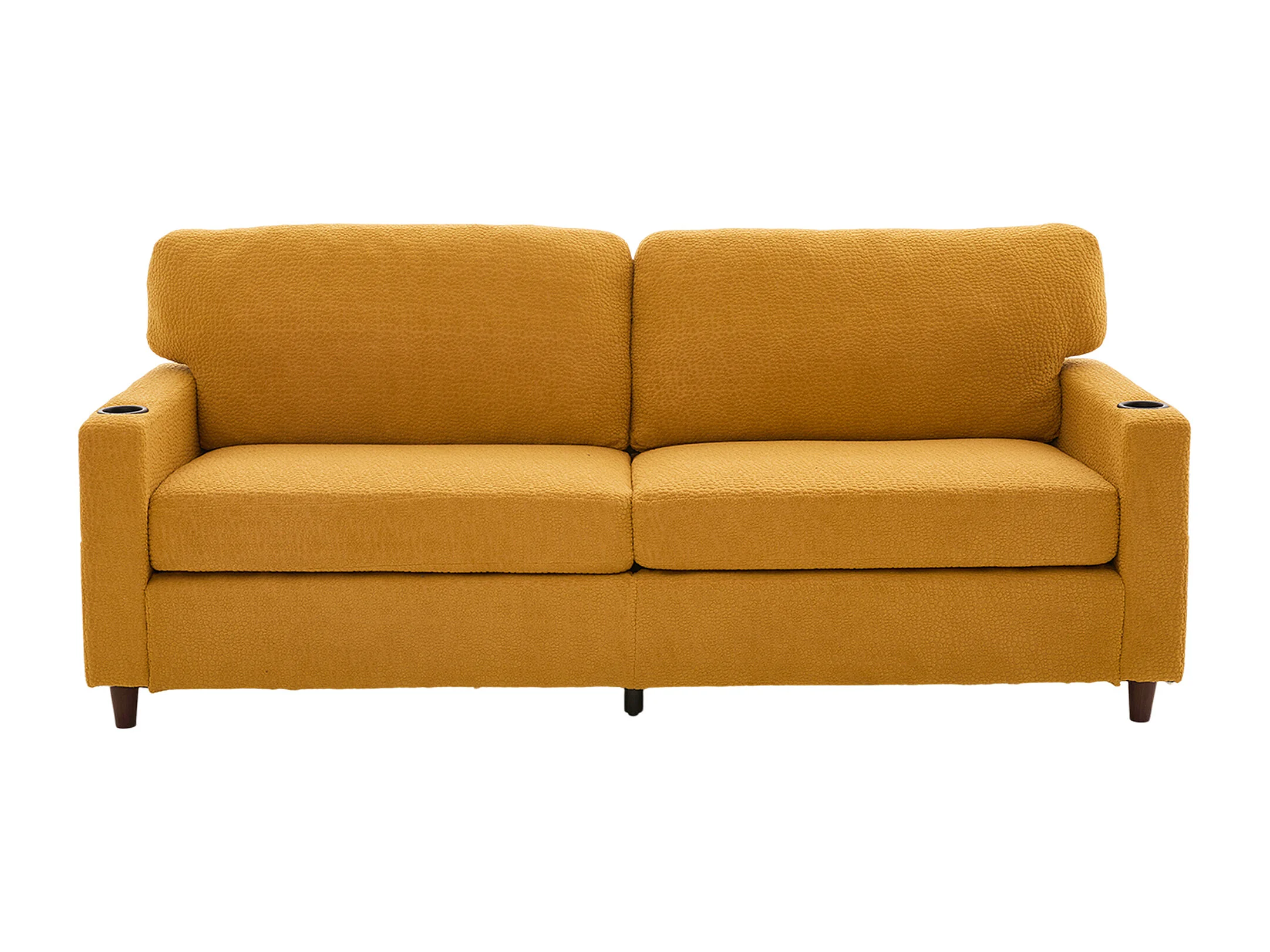 Canapé 2 places 203x77.5x86 cm, port USB-C, éclairage LED dimmable, poches latérales, porte-gobelets, chenille jaune moutarde