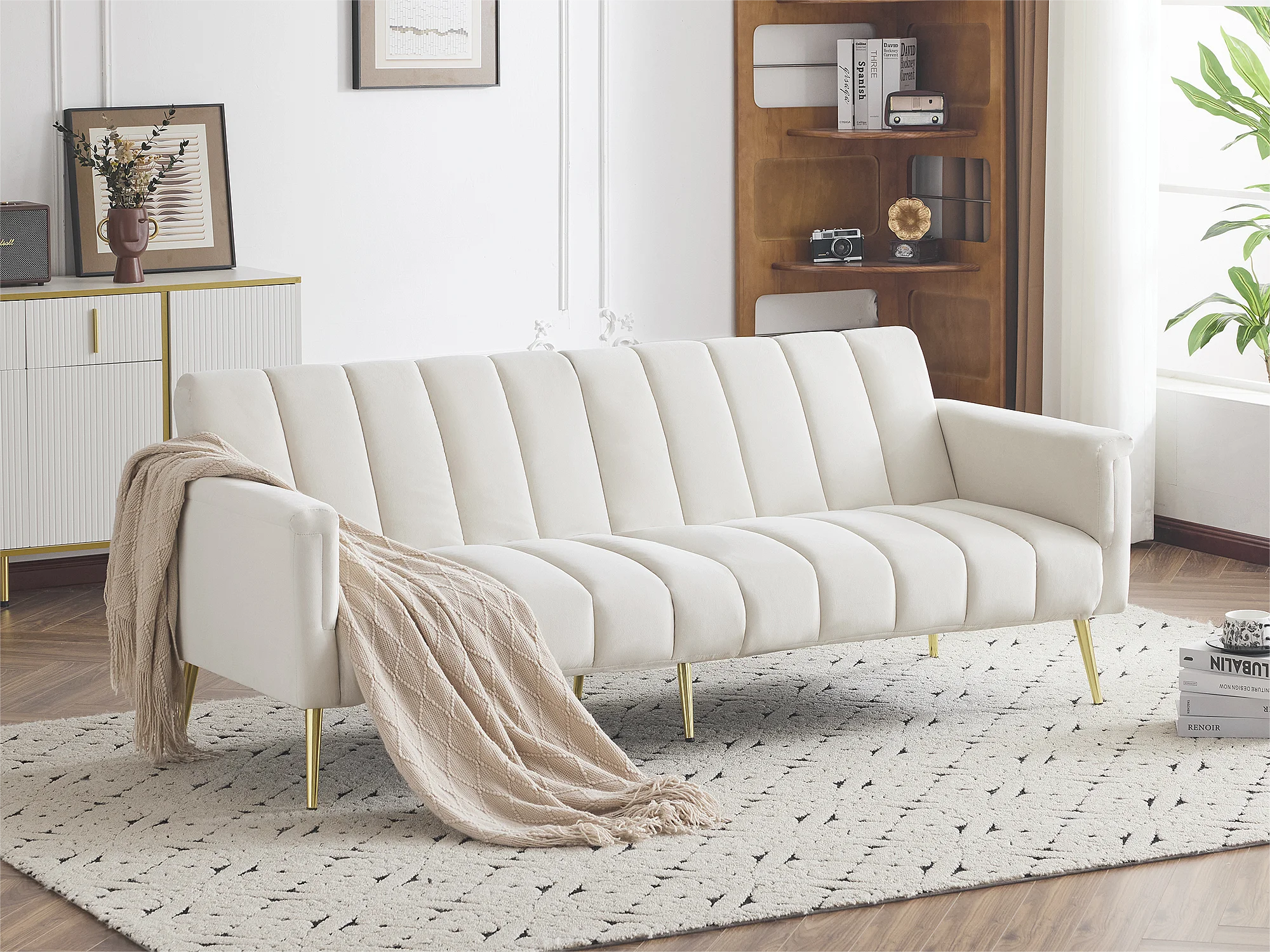 Canapé 3 palces conertible clic-clac en tissu velours - Beige