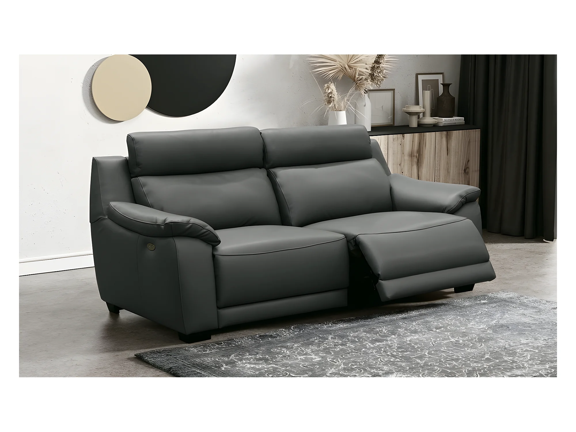 Canapé 3 places avec 2 relax électriques en cuir italien buffle TOPRELAX, gris foncé