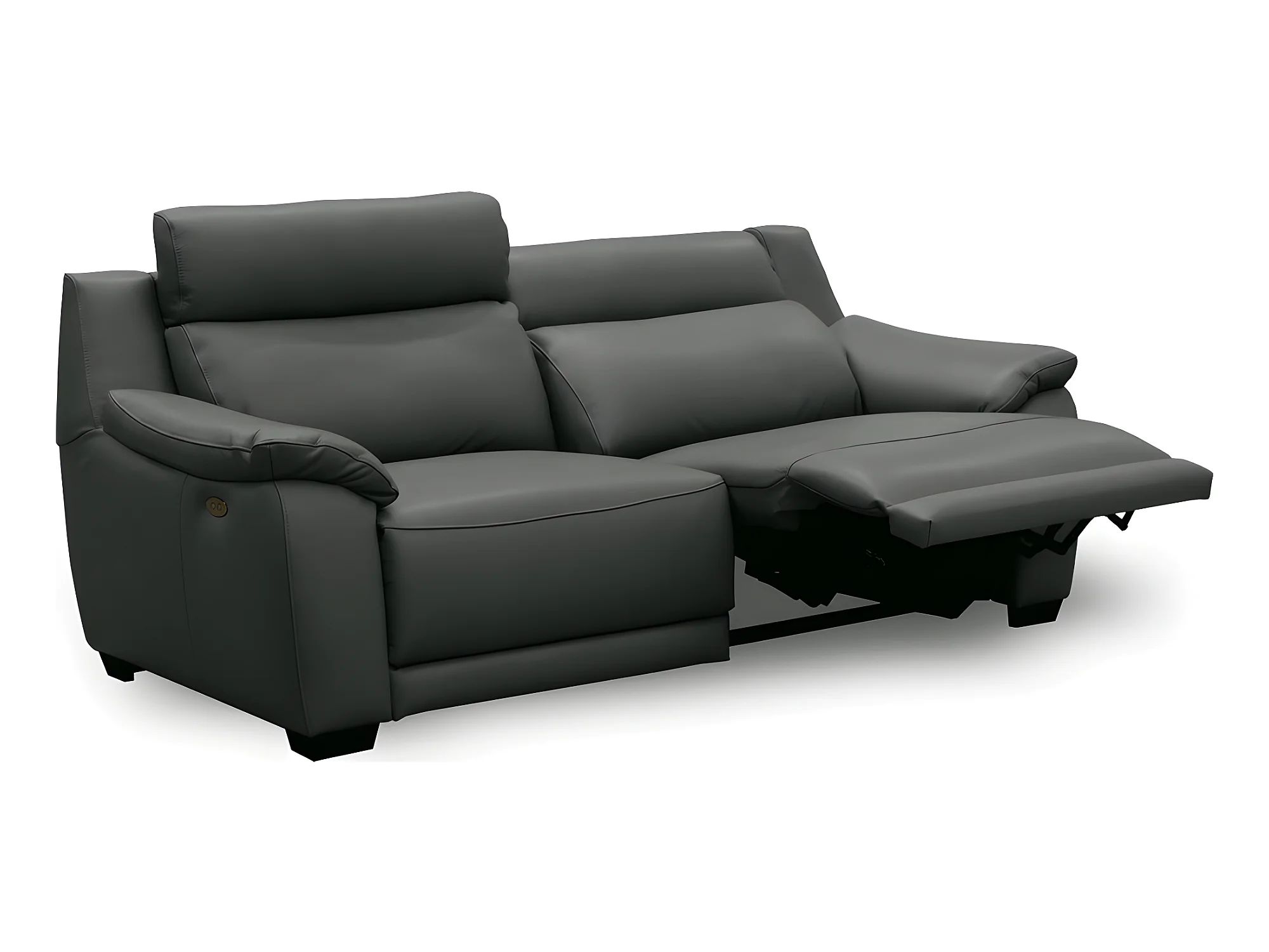 Canapé 3 places avec 2 relax électriques en 100% tout cuir épais de luxe italien, PERINI, anthracite