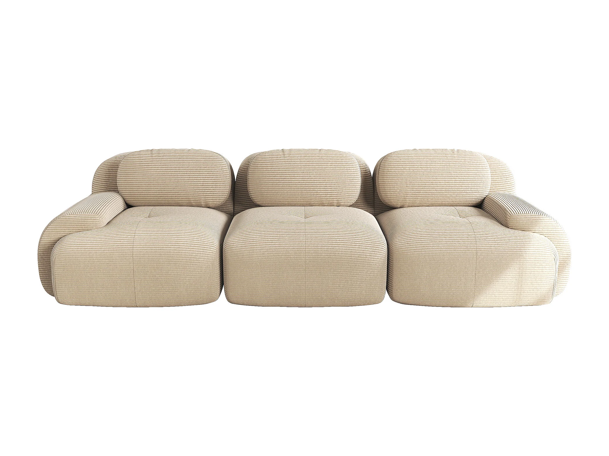 Canapé 3 places avec dossier et accoudoirs rembourrés, velours côtelé beige - pour salon et chambre