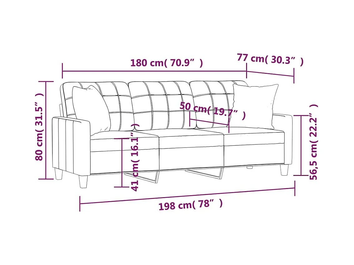 Canapé 3 places avec oreillers décoratifs bordeaux 180 cm tissu