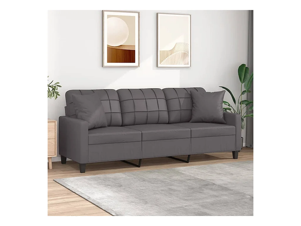 Canapé 3 places avec oreillers décoratifs gris 180cm similicuir