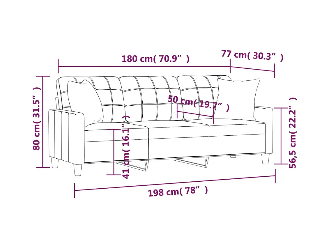 Canapé 3 places avec oreillers décoratifs gris 180cm similicuir