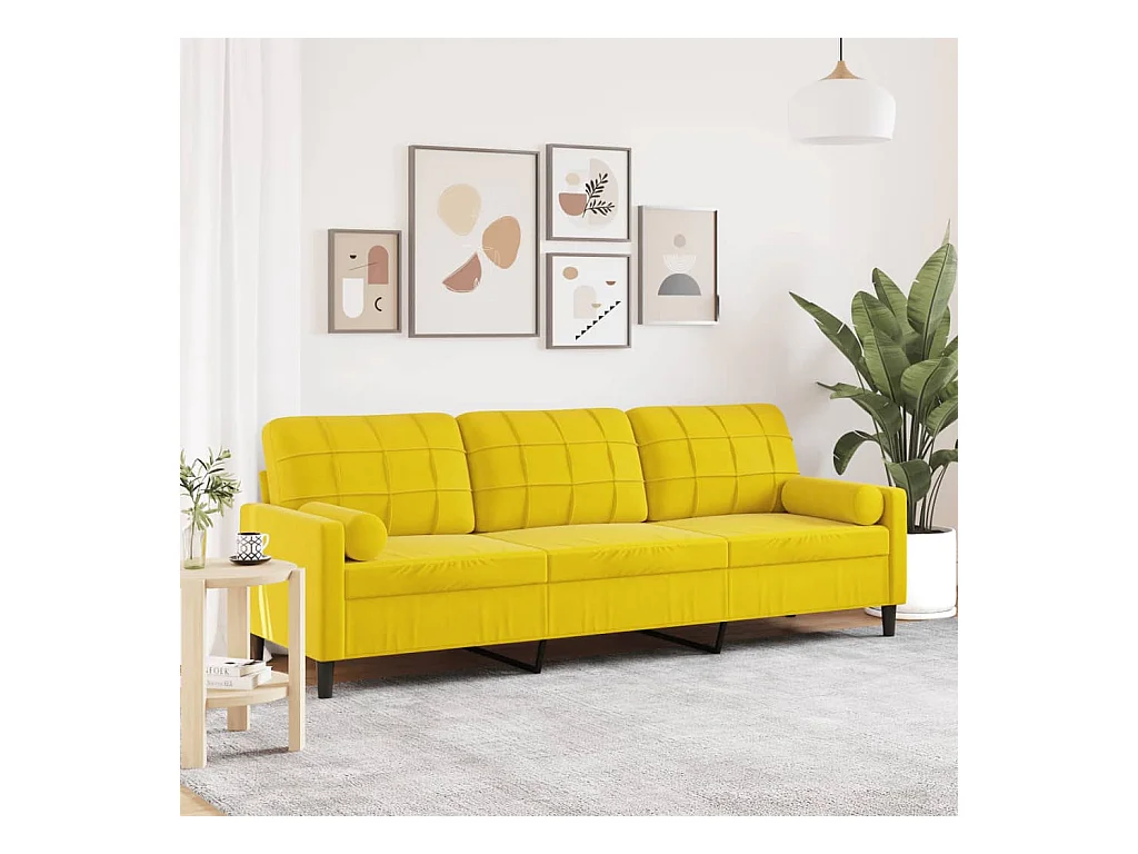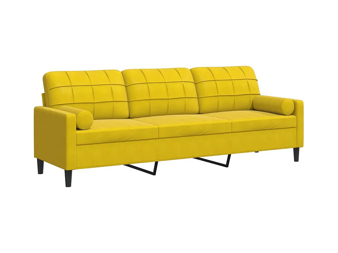 Canapé 3 places avec oreillers décoratifs jaune 210 cm velours