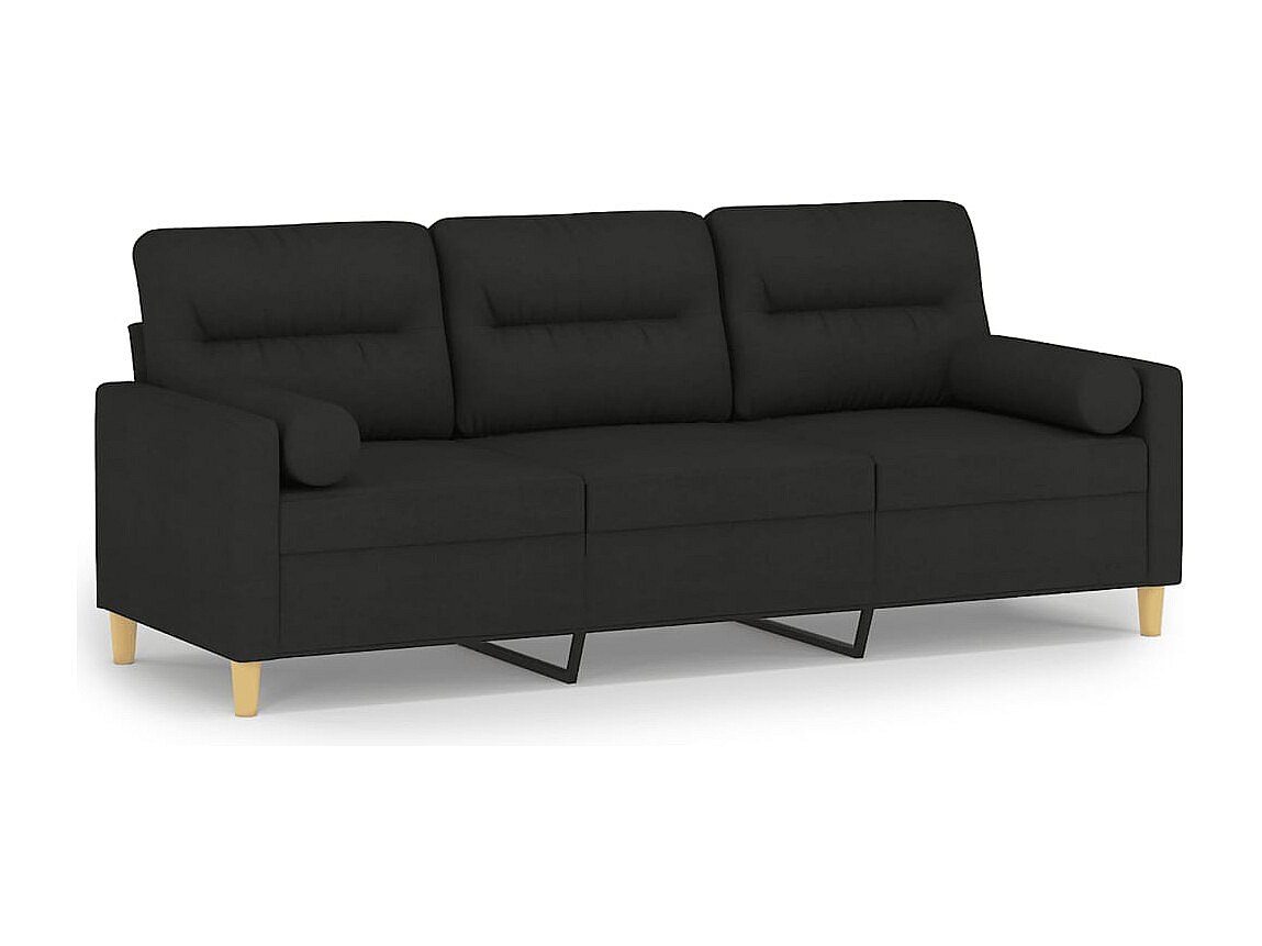 Canapé 3 places avec oreillers décoratifs noir 180 cm tissu