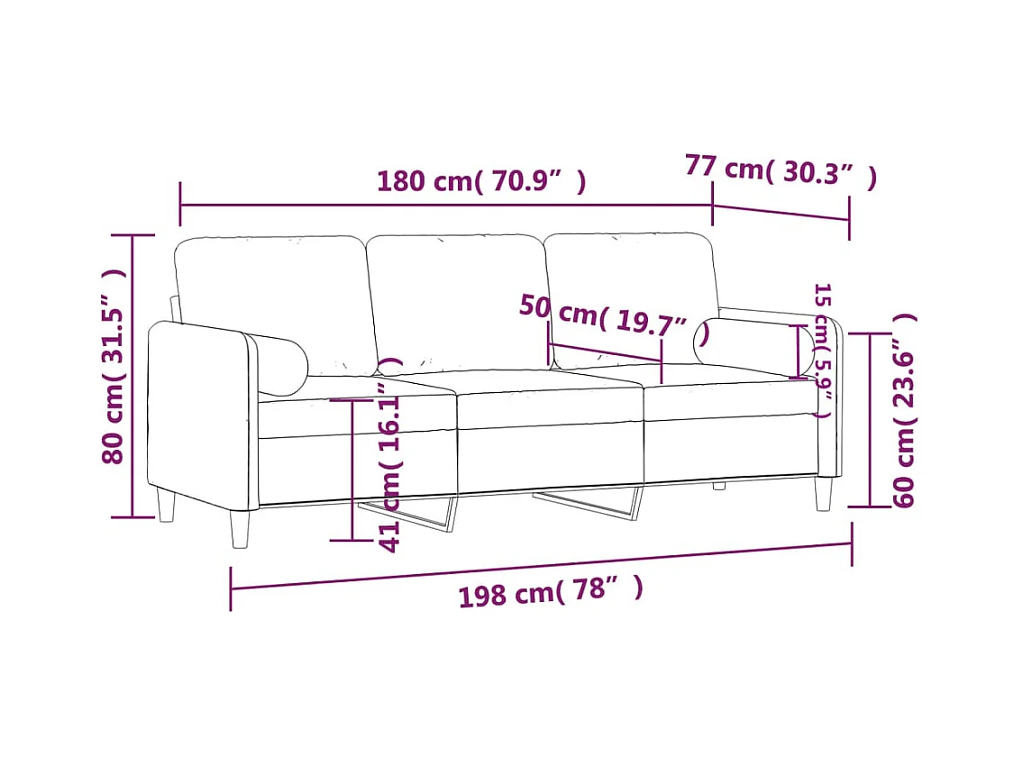 Canapé à 3 places Rose 180 cm Velours REO23946