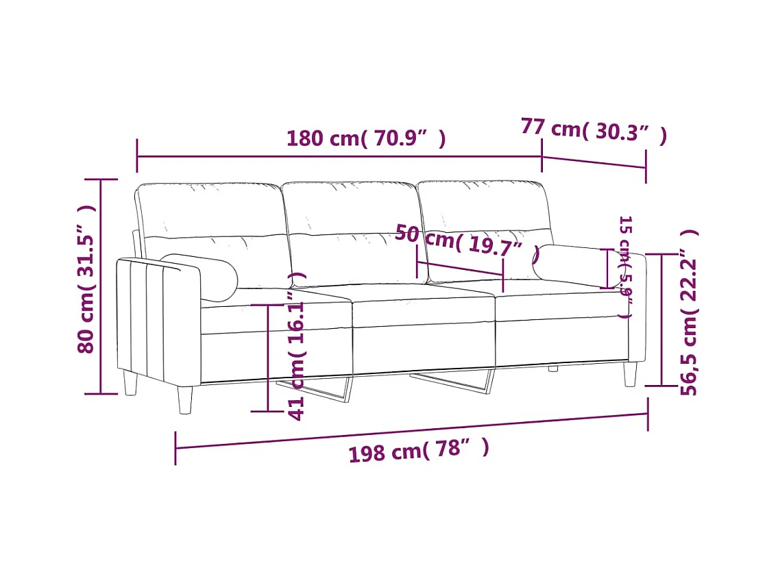Canapé 3 places avec oreillers décoratifs taupe 180 cm tissu