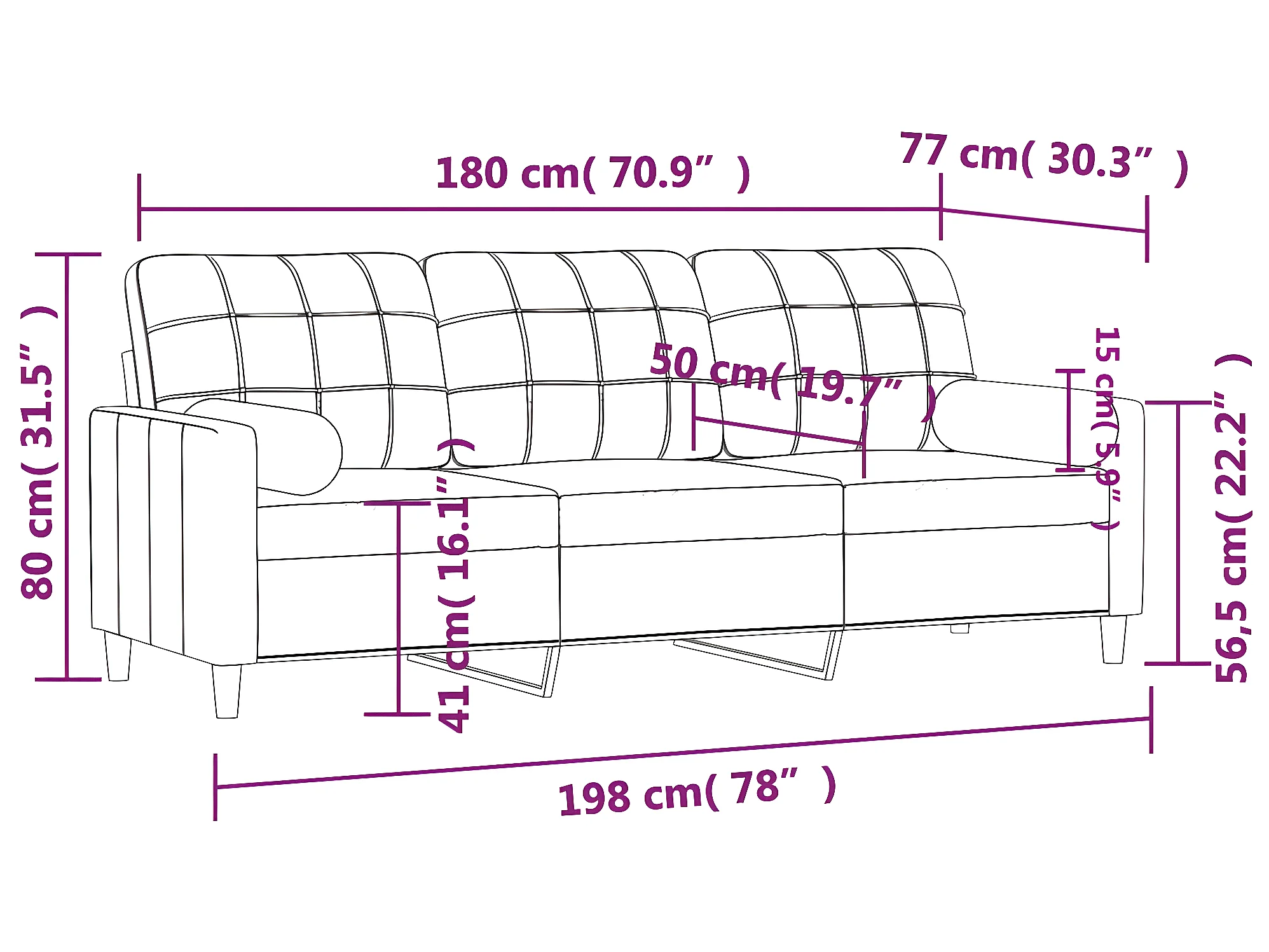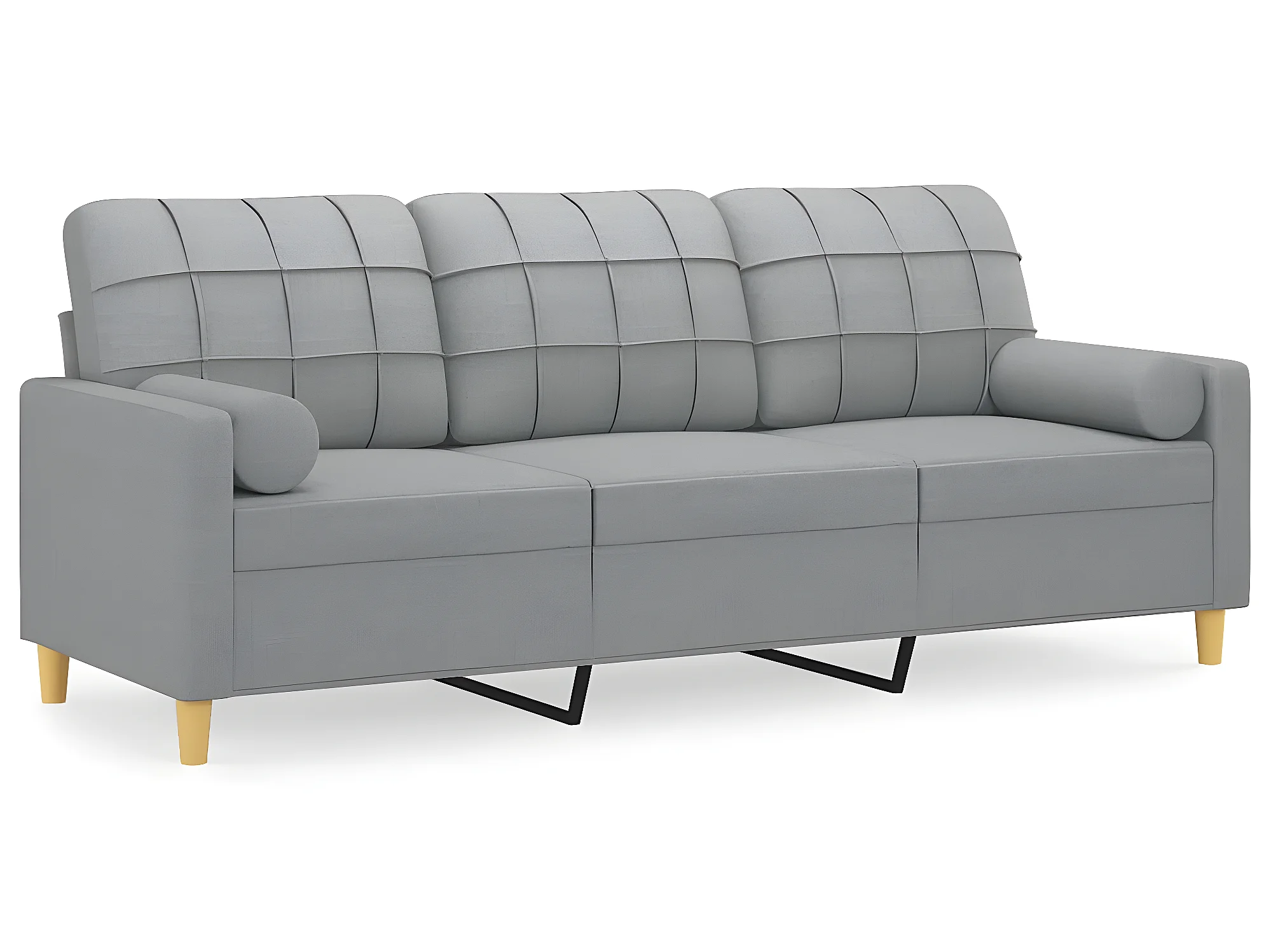 Canapé 3 places avec oreillers gris clair 180 cm tissu
