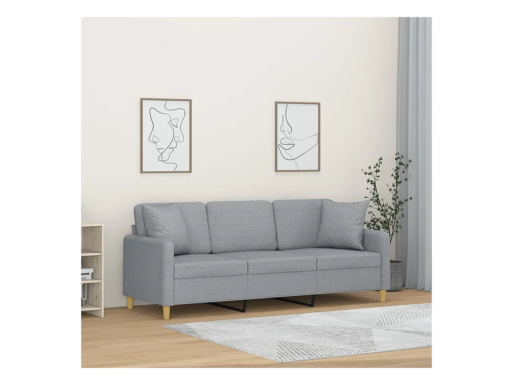 Canapé 3 places avec oreillers gris clair 180 cm tissu