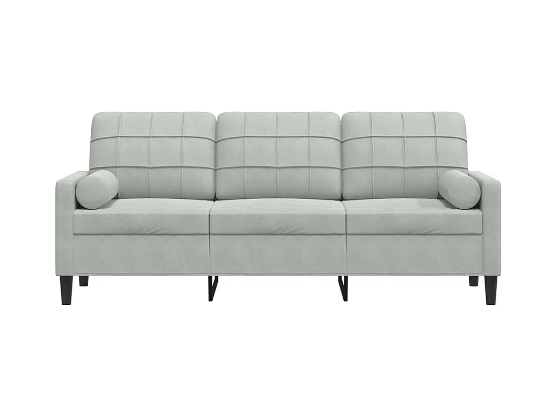 Canapé 3 places avec oreillers gris clair 180 cm velours