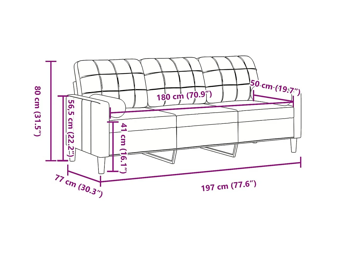 Canapé 3 places avec oreillers gris foncé 210 cm velours