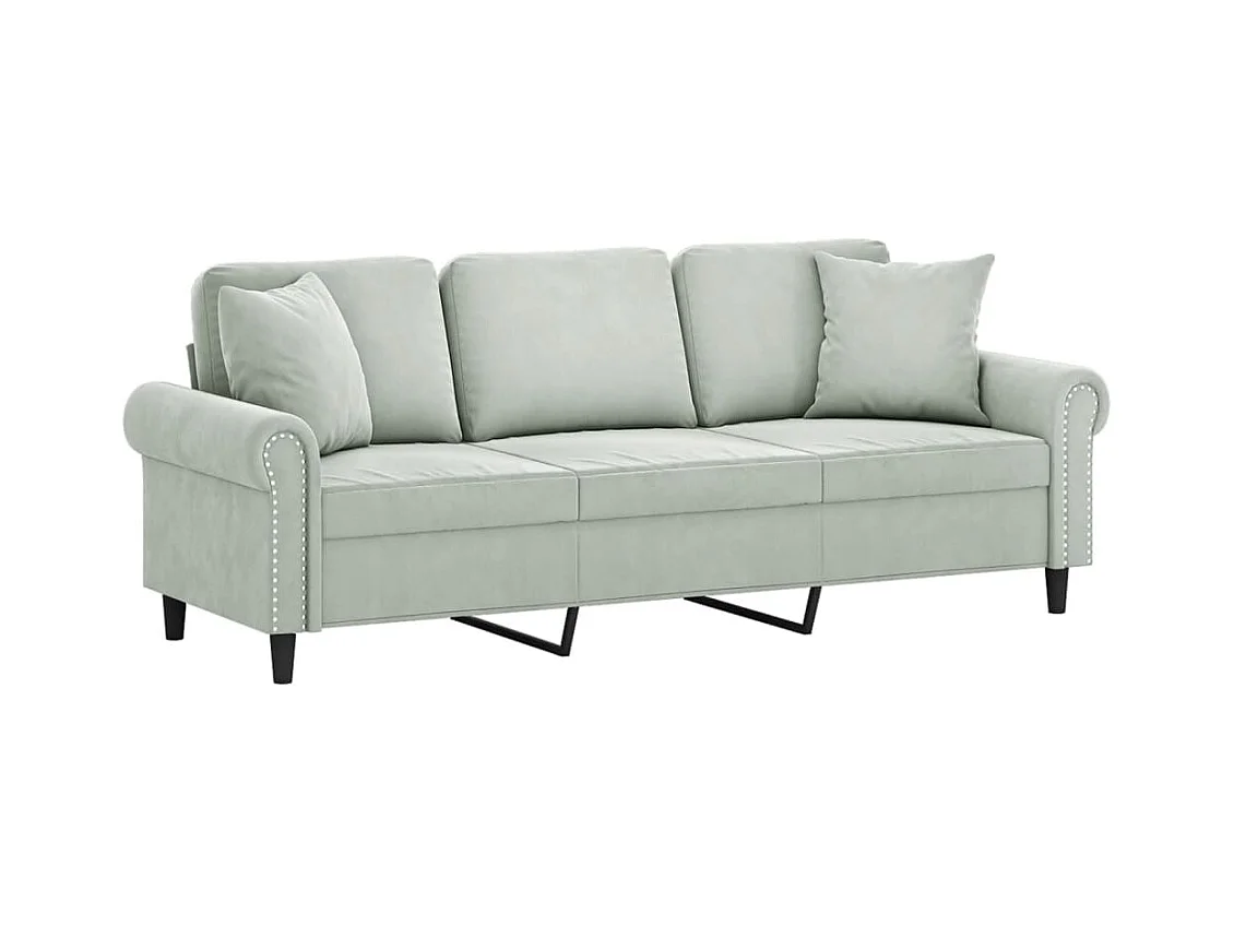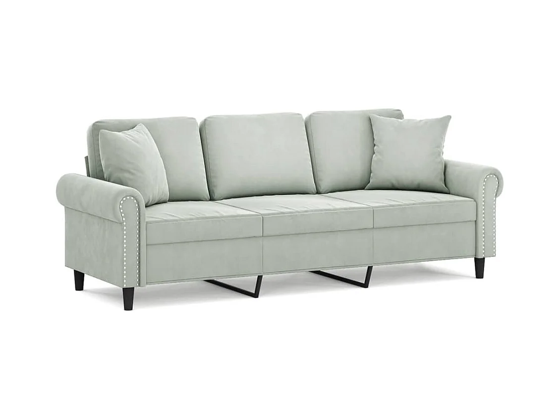 Canapé 3 places avec oreillers gris clair 180 cm velours
