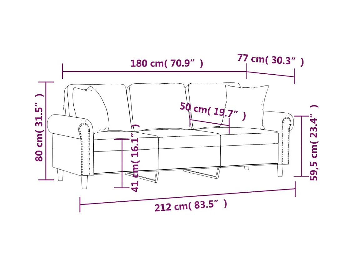Canapé 3 places avec oreillers gris foncé 210 cm velours