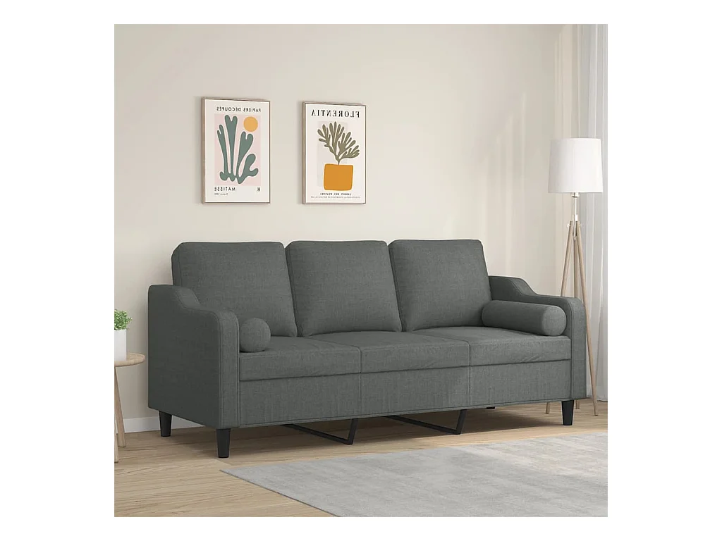 Canapé à 3 places avec oreillers gris foncé 180 cm tissu OID7853