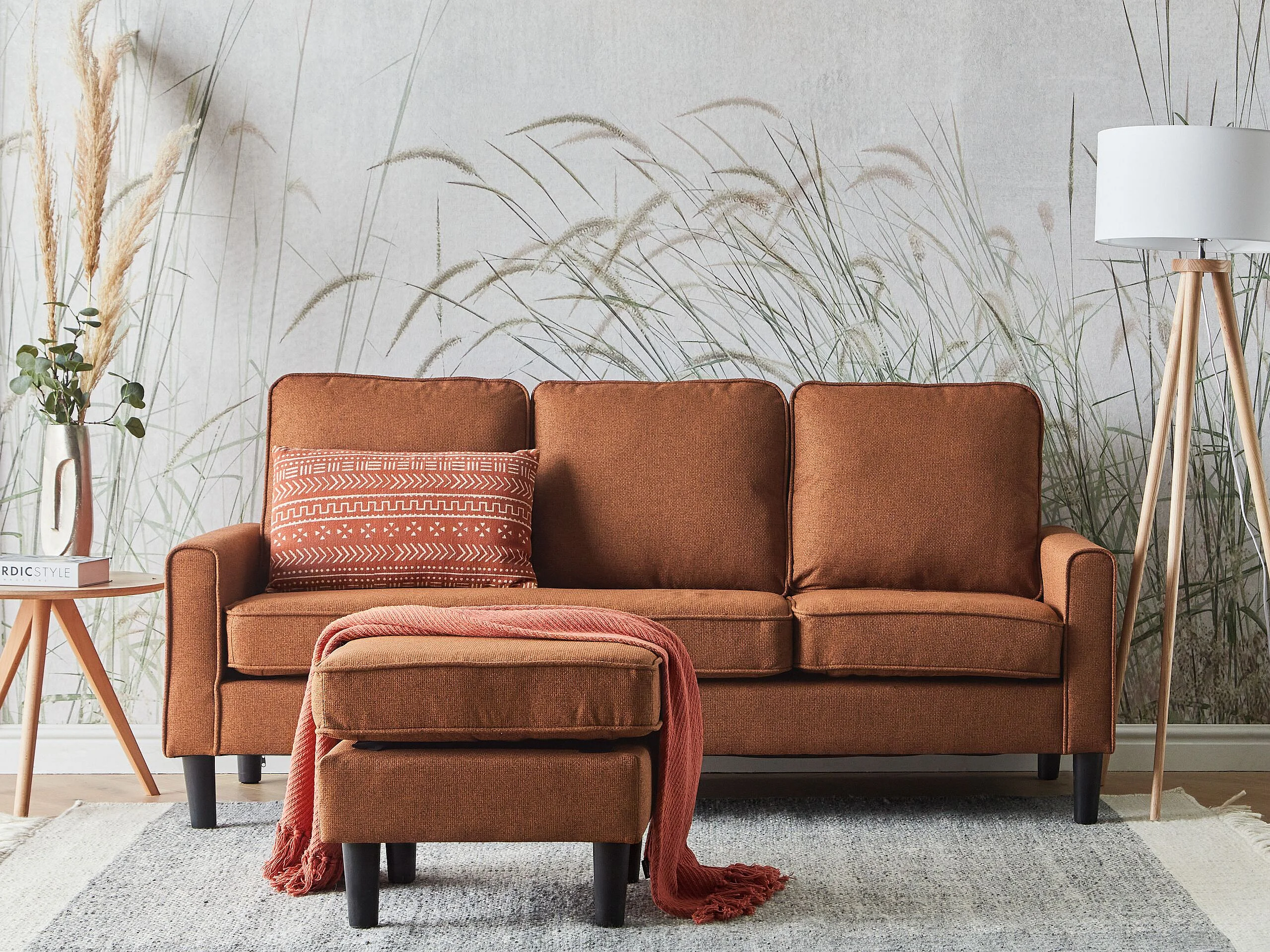 Canapé 3 places AVESTA Tissu Marron doré avec ottoman