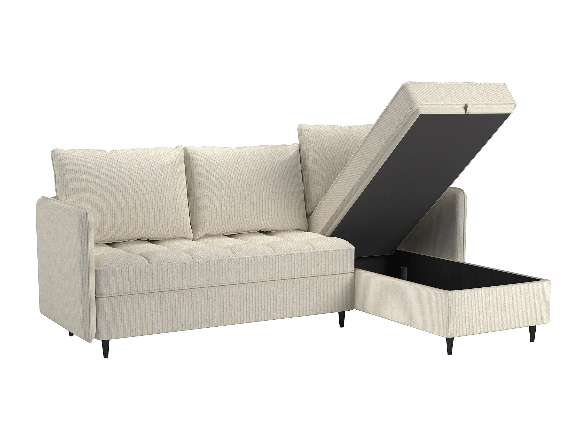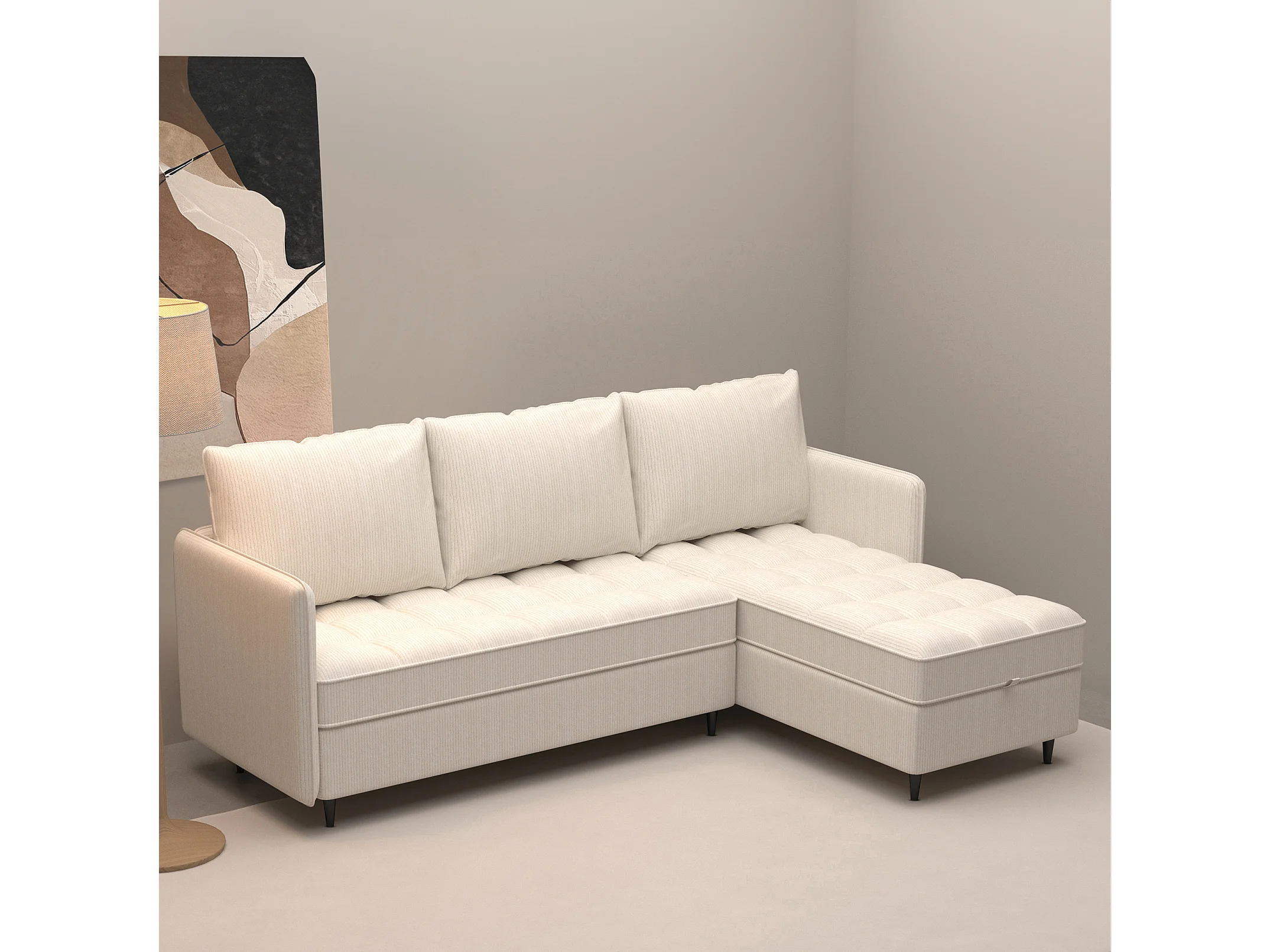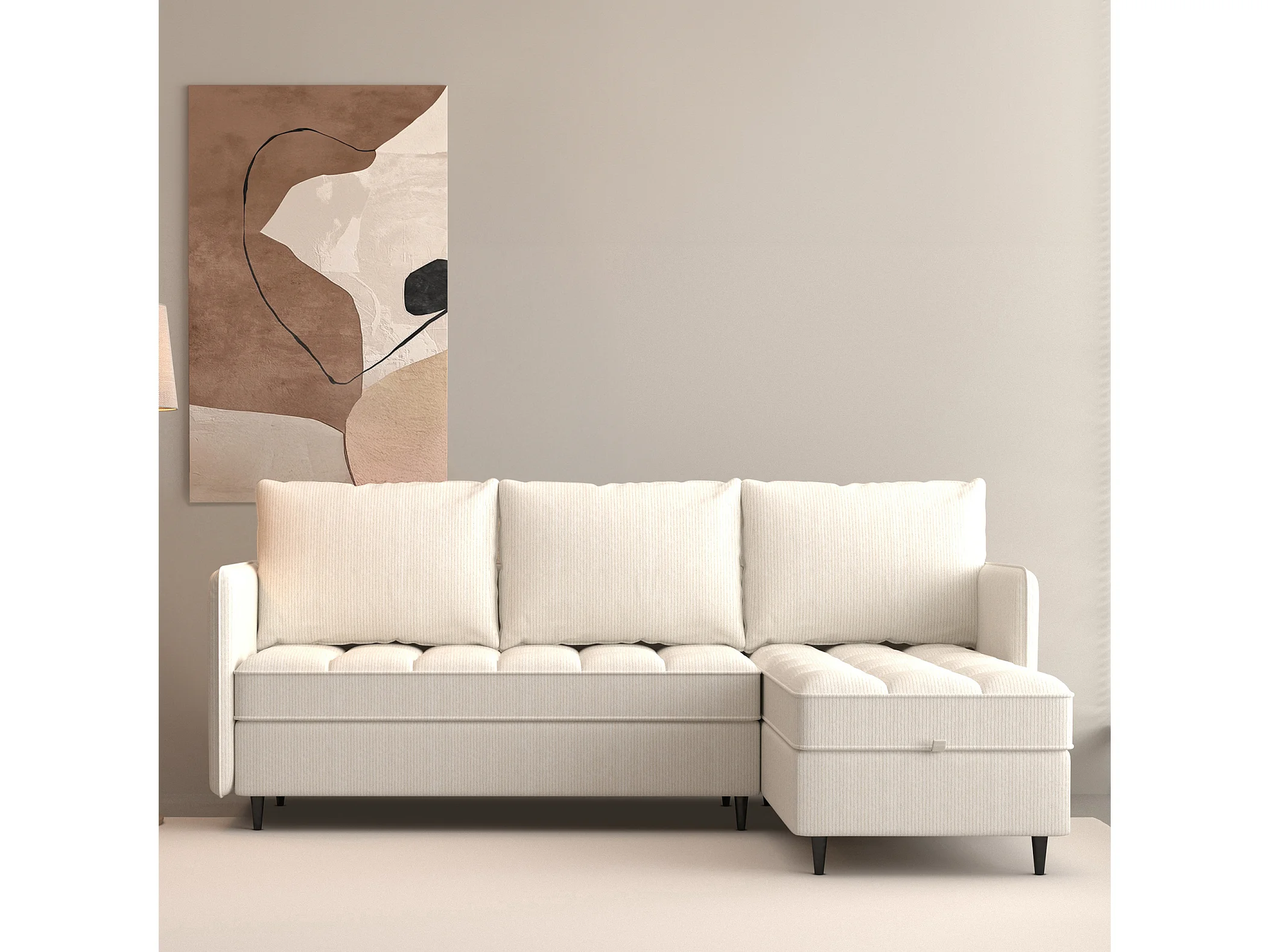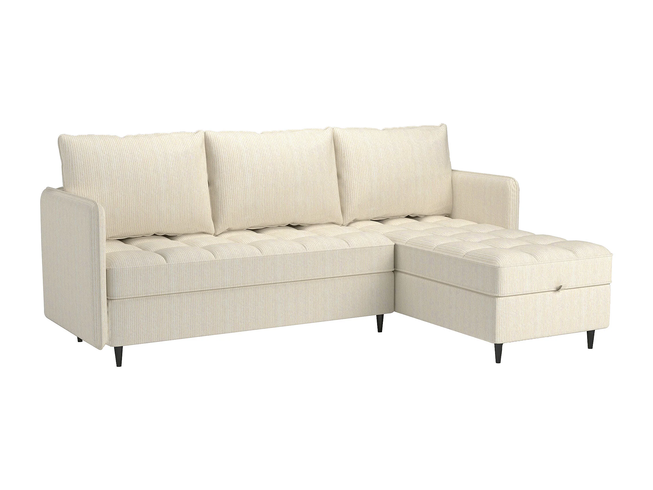 Canapé 3 places avec rangement/méridienne réversible en tissu crème