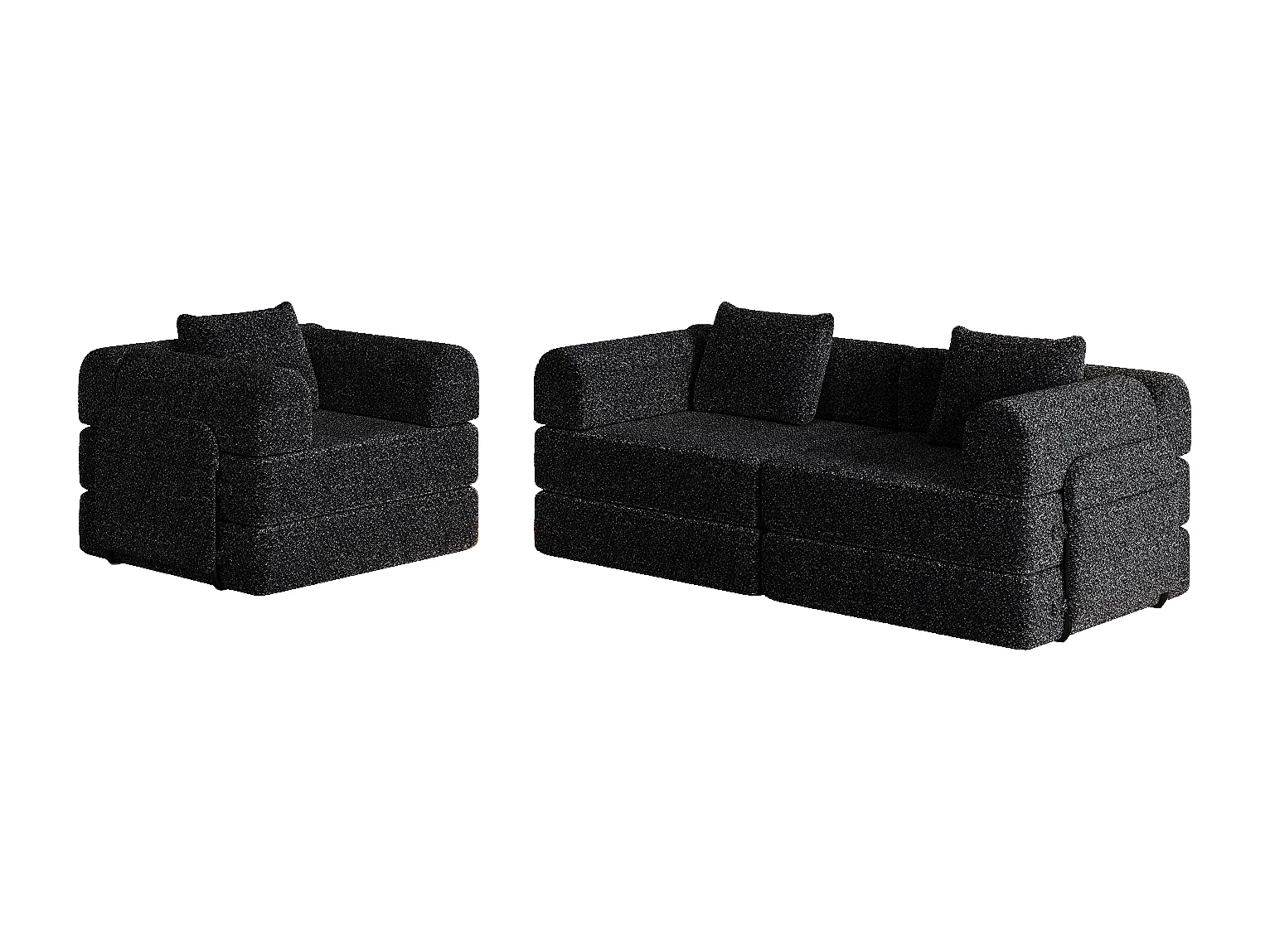Canapé 3 places, Canapé convertible avec accoudoirs et poches latérales, structure en métal - Chenille noire
