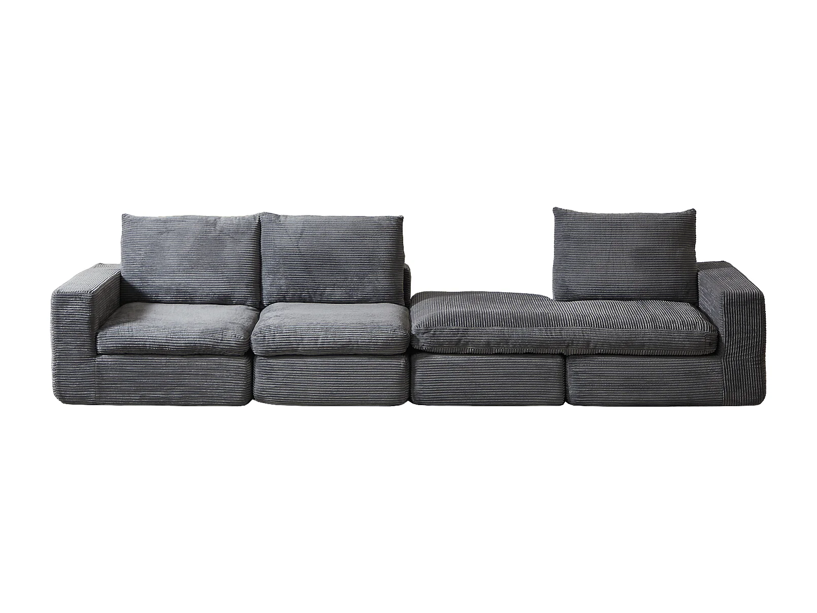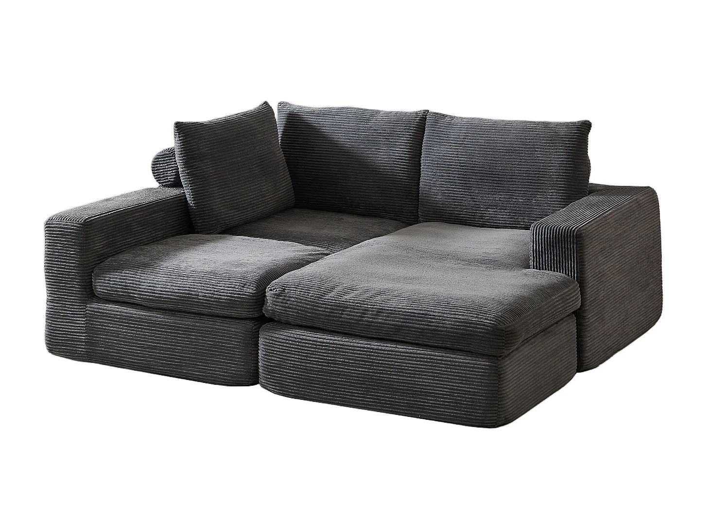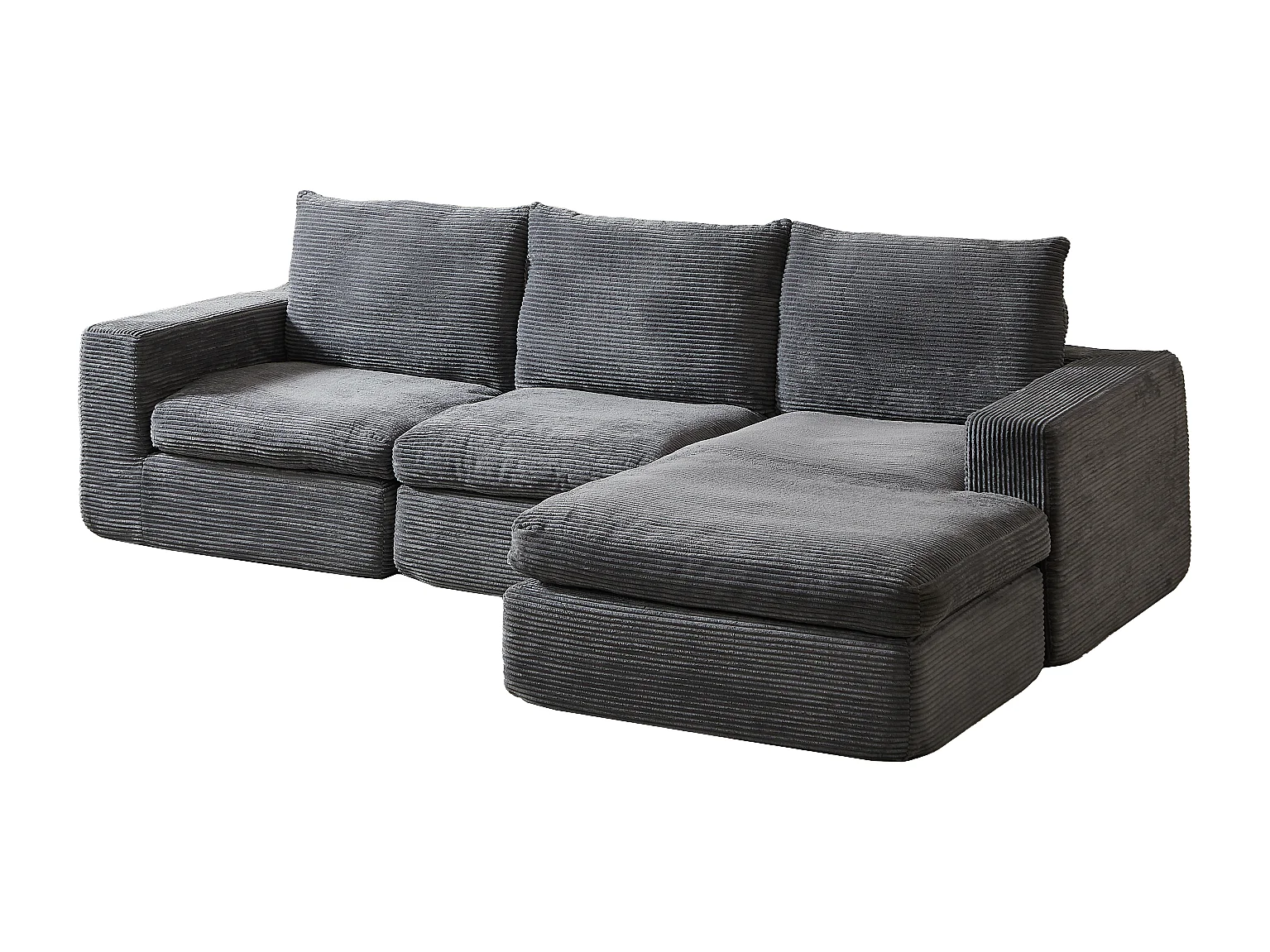 Canapé 3 places, canapé d'angle avec dossier et accoudoirs rembourrés - Velours côtelé gris foncé
