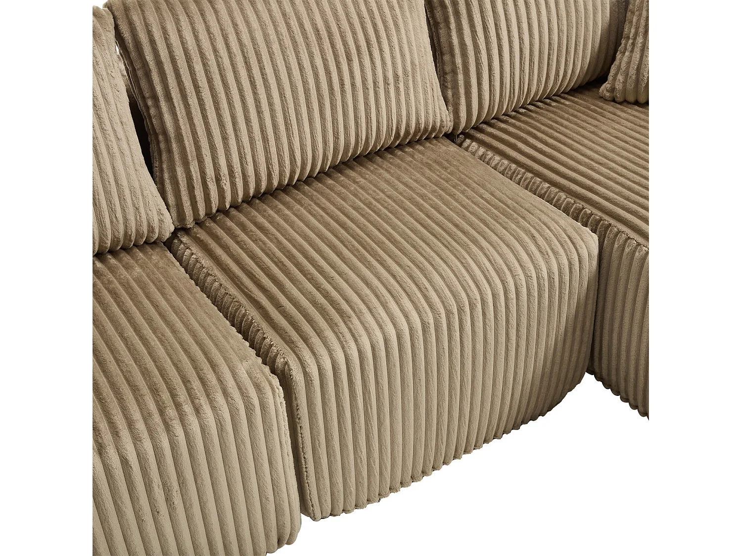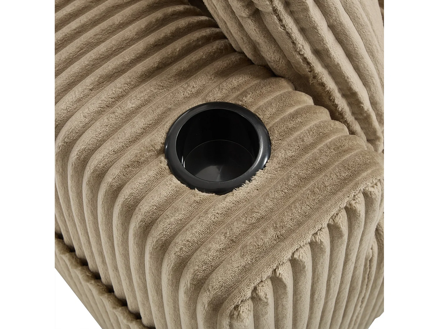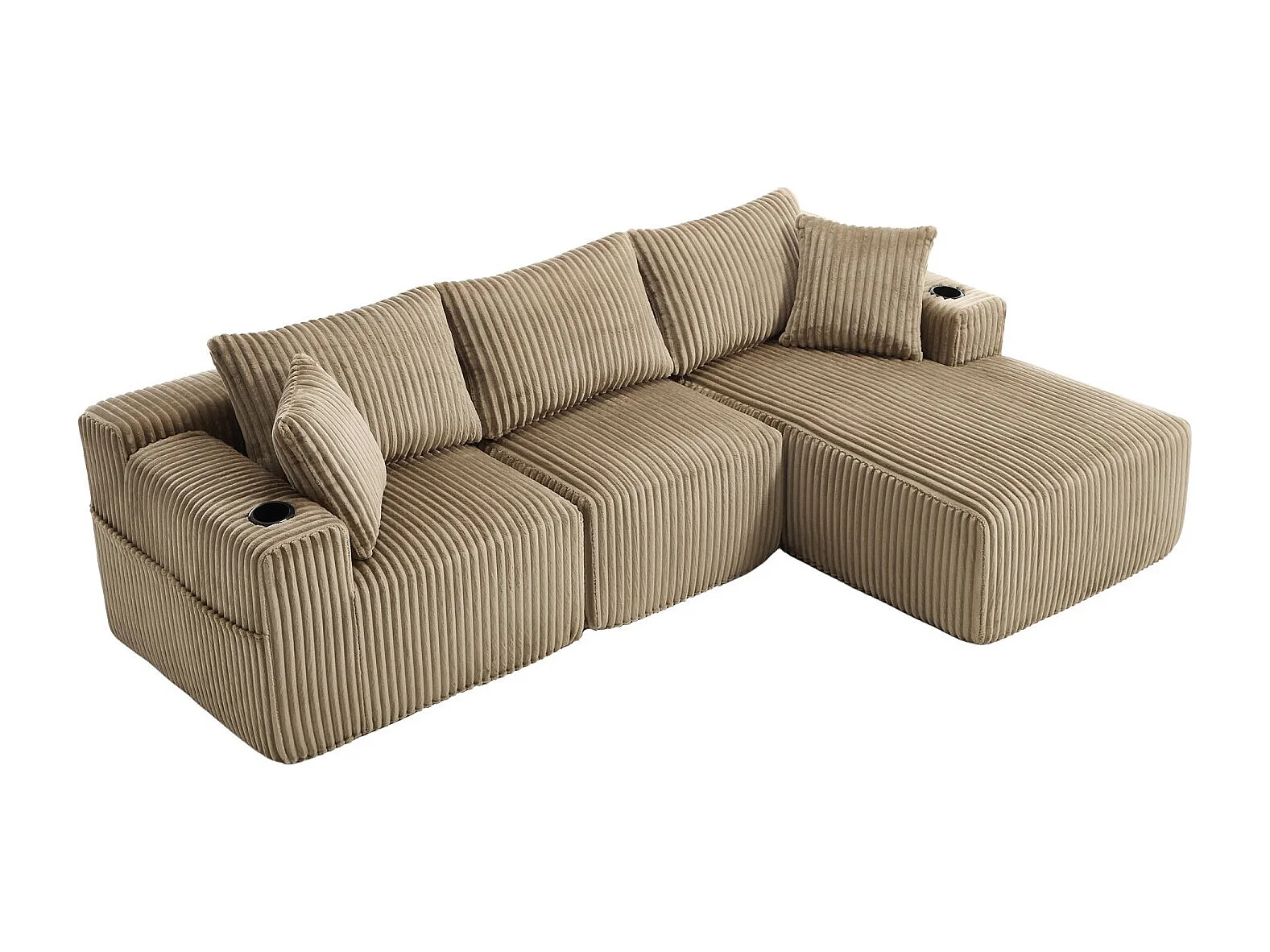 Canapé 3 places, Canapé rembourré avec poches latérales et porte-gobelets - Velours côtelé kaki