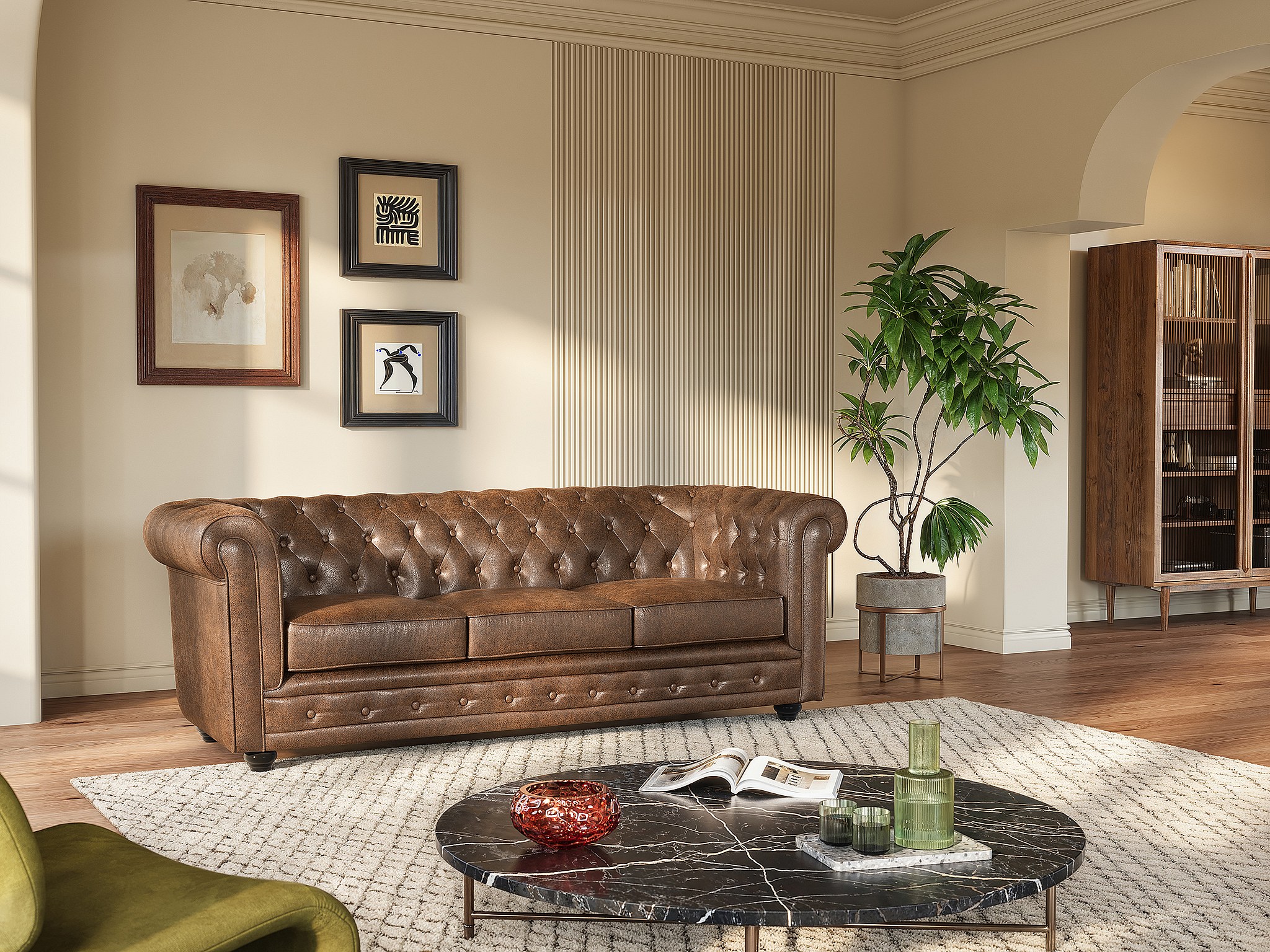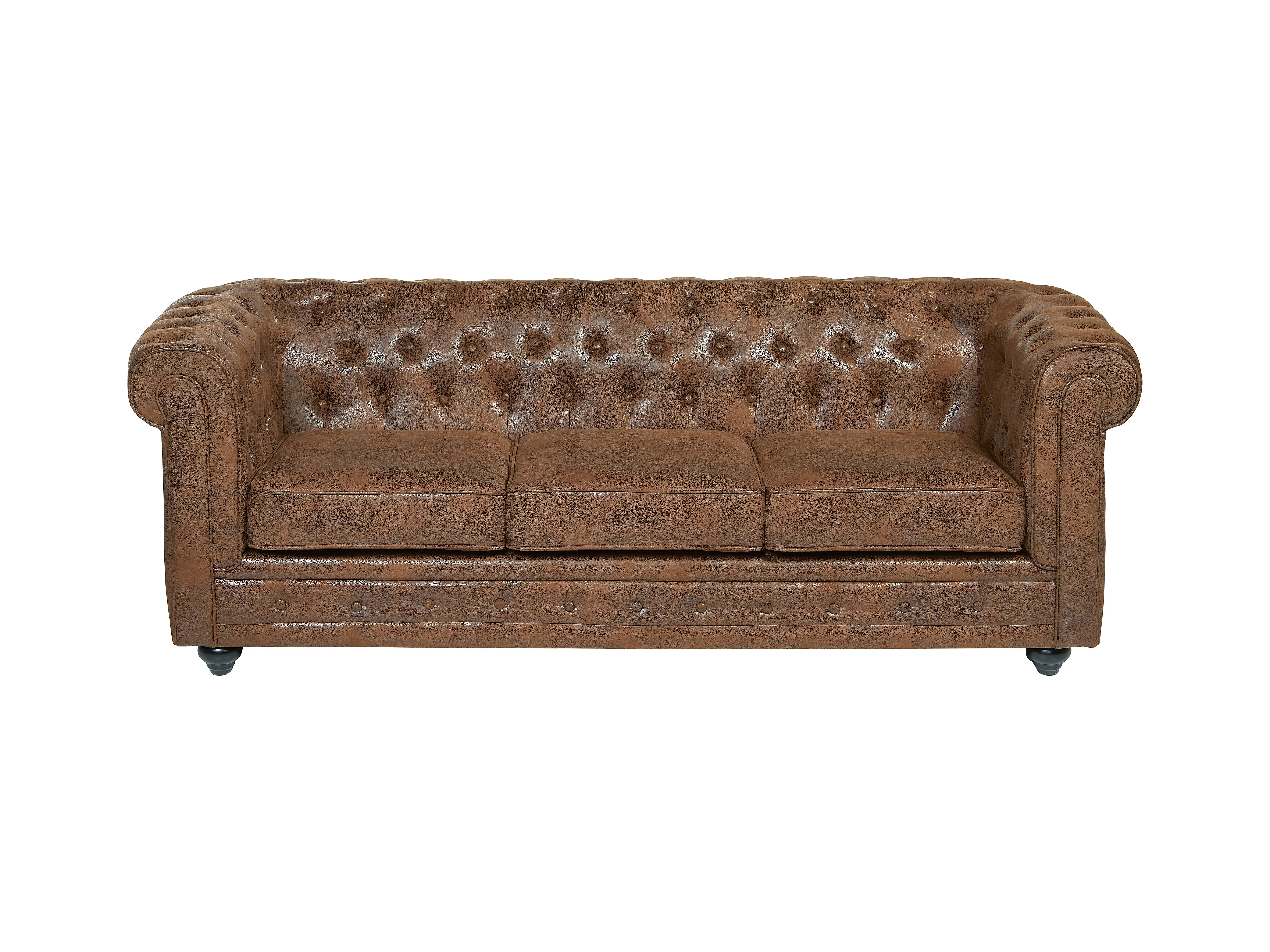 Canapé 3 places CHESTERFIELD en microfibre aspect cuir vieilli