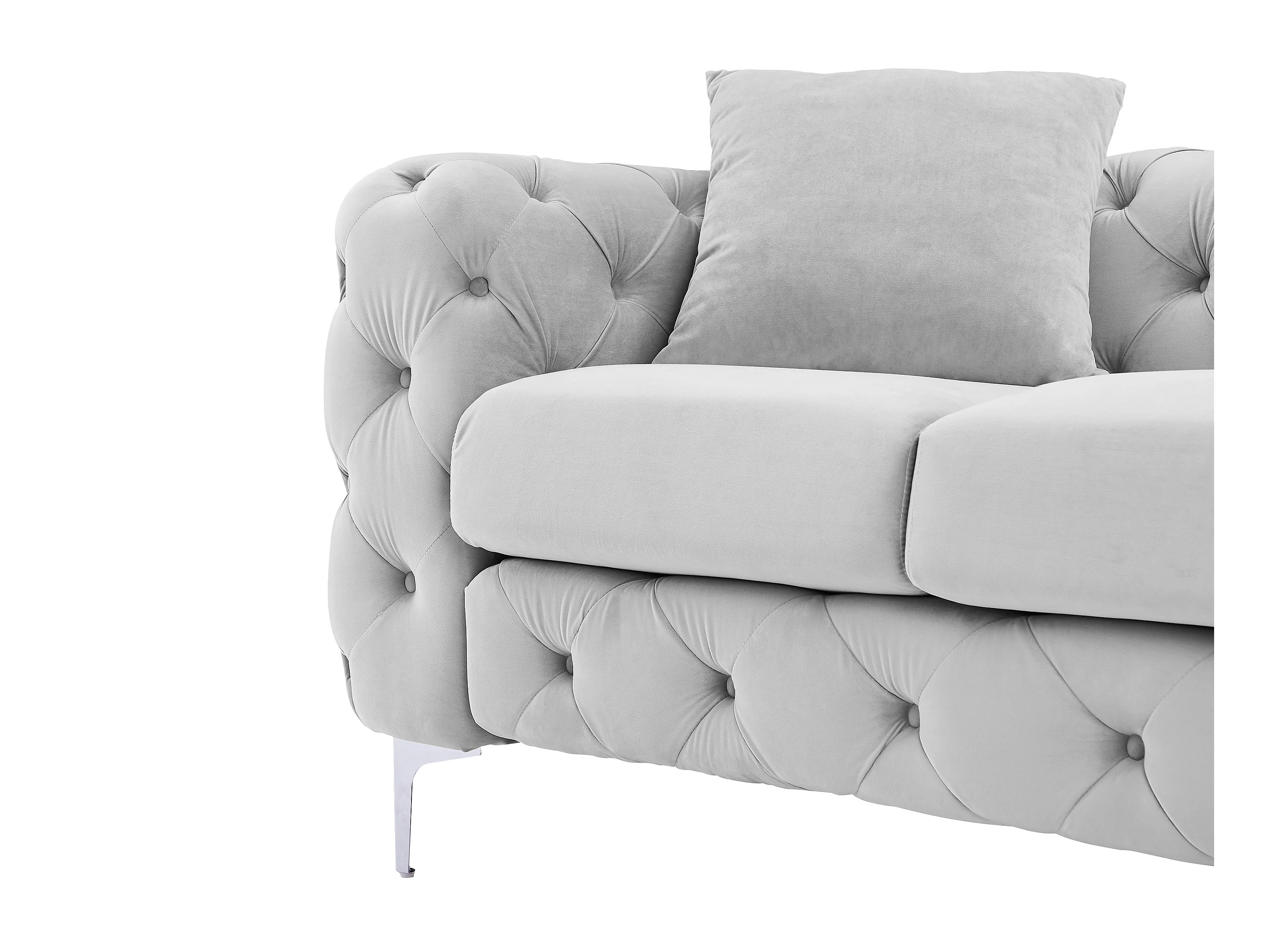 Canapé 3 places chesterfield en velours gris clair EDWINA