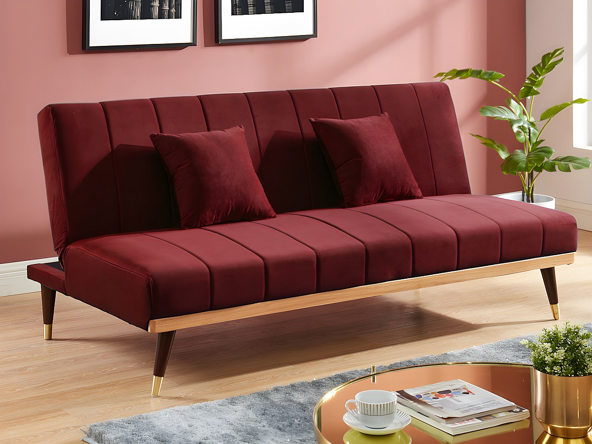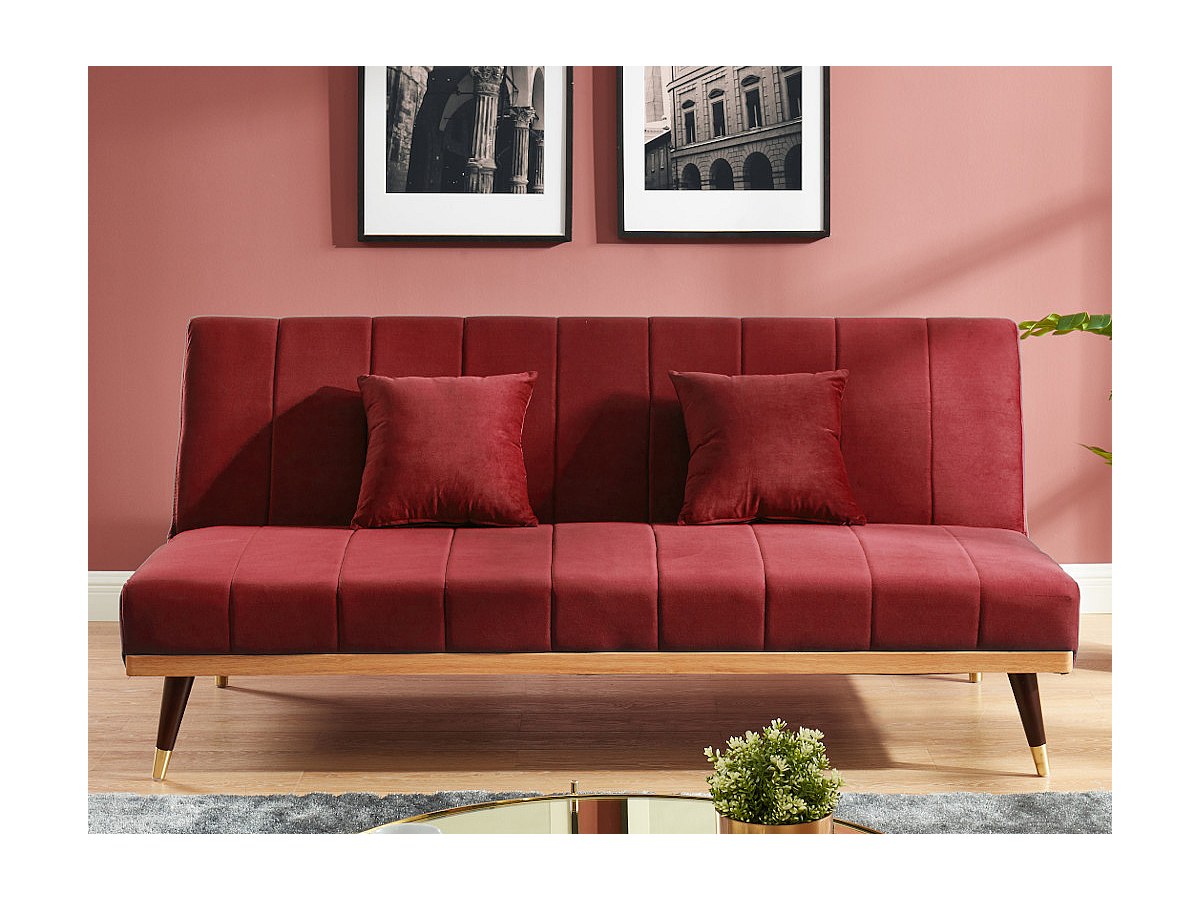 Canapé 3 places clic-clac en velours KERBI - Rouge cerise