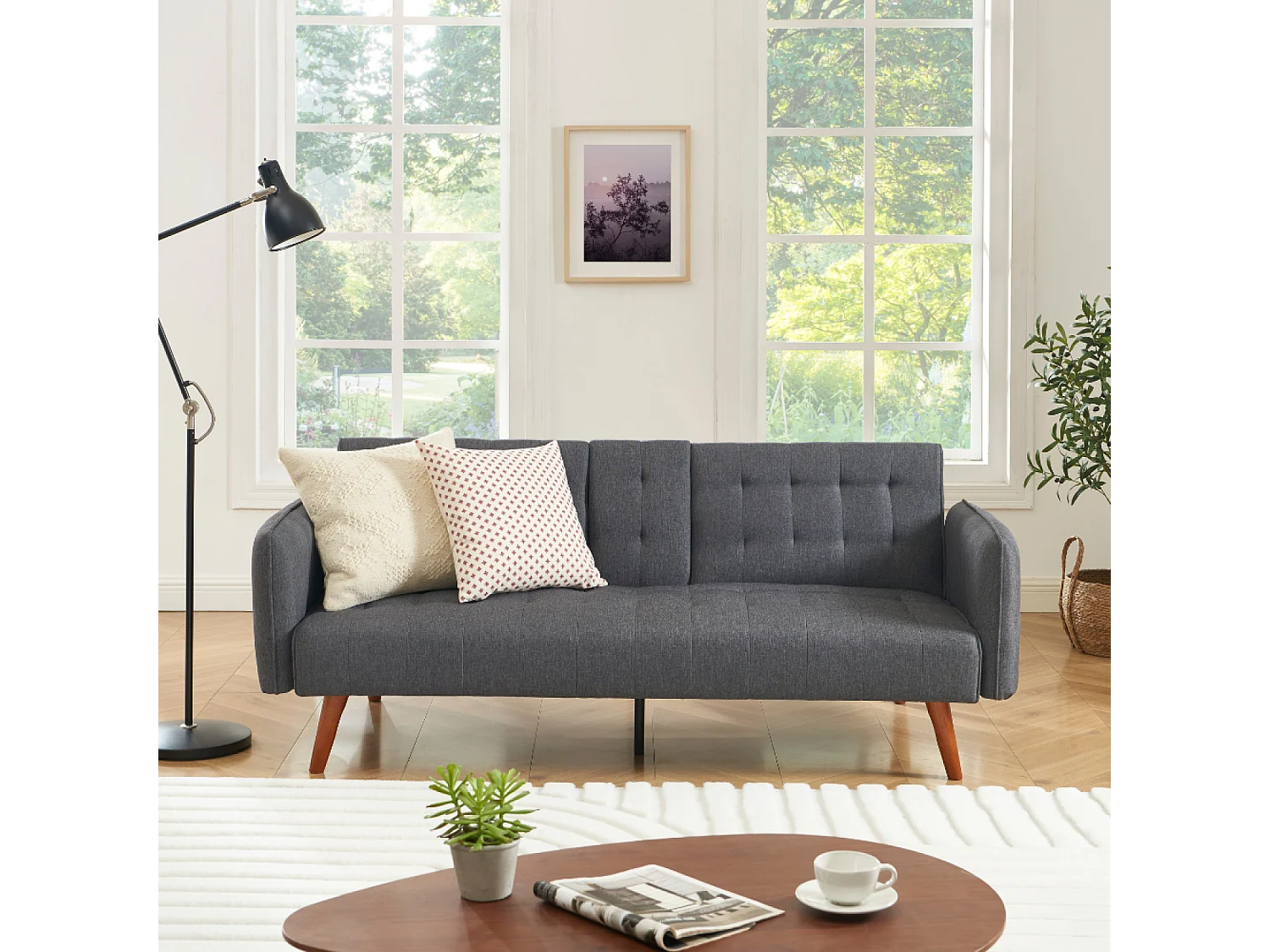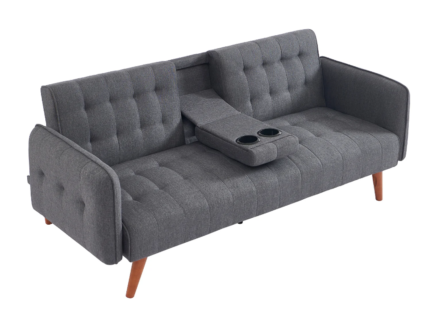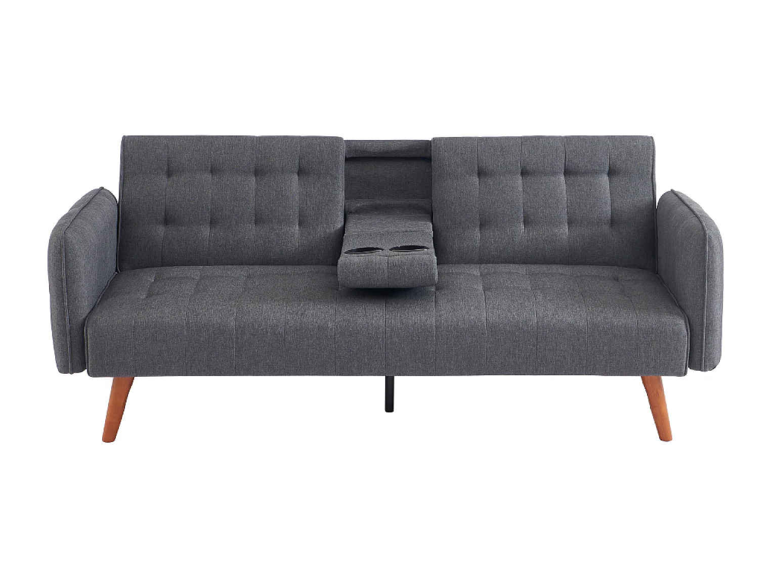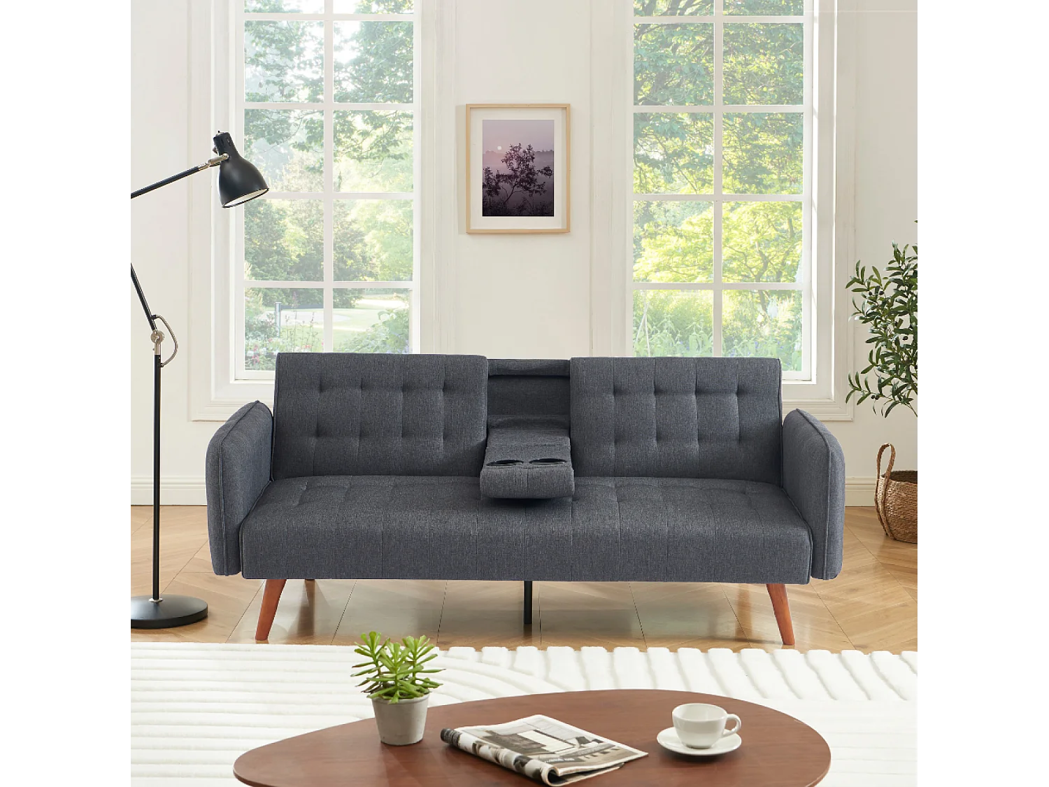 Canapé 3 places convertible avec tablette centrale rabattable gris INVERNESS