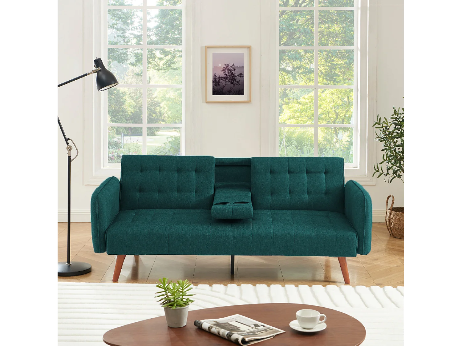 Canapé 3 places convertible avec tablette centrale rabattable vert INVERNESS