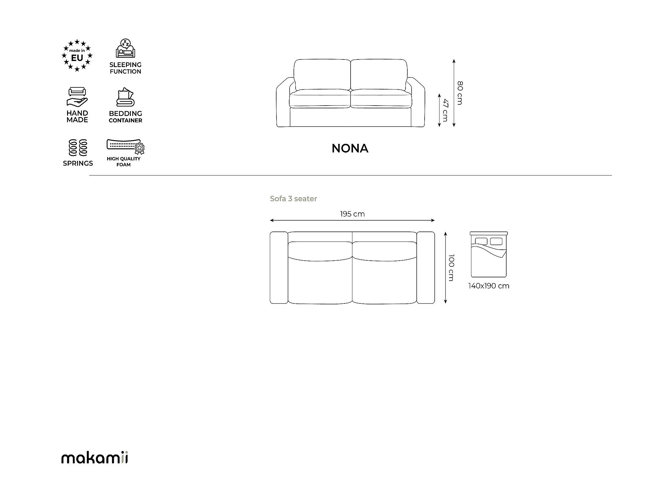 Canapé 3 places convertible en Strukturstoff - gris - KONA