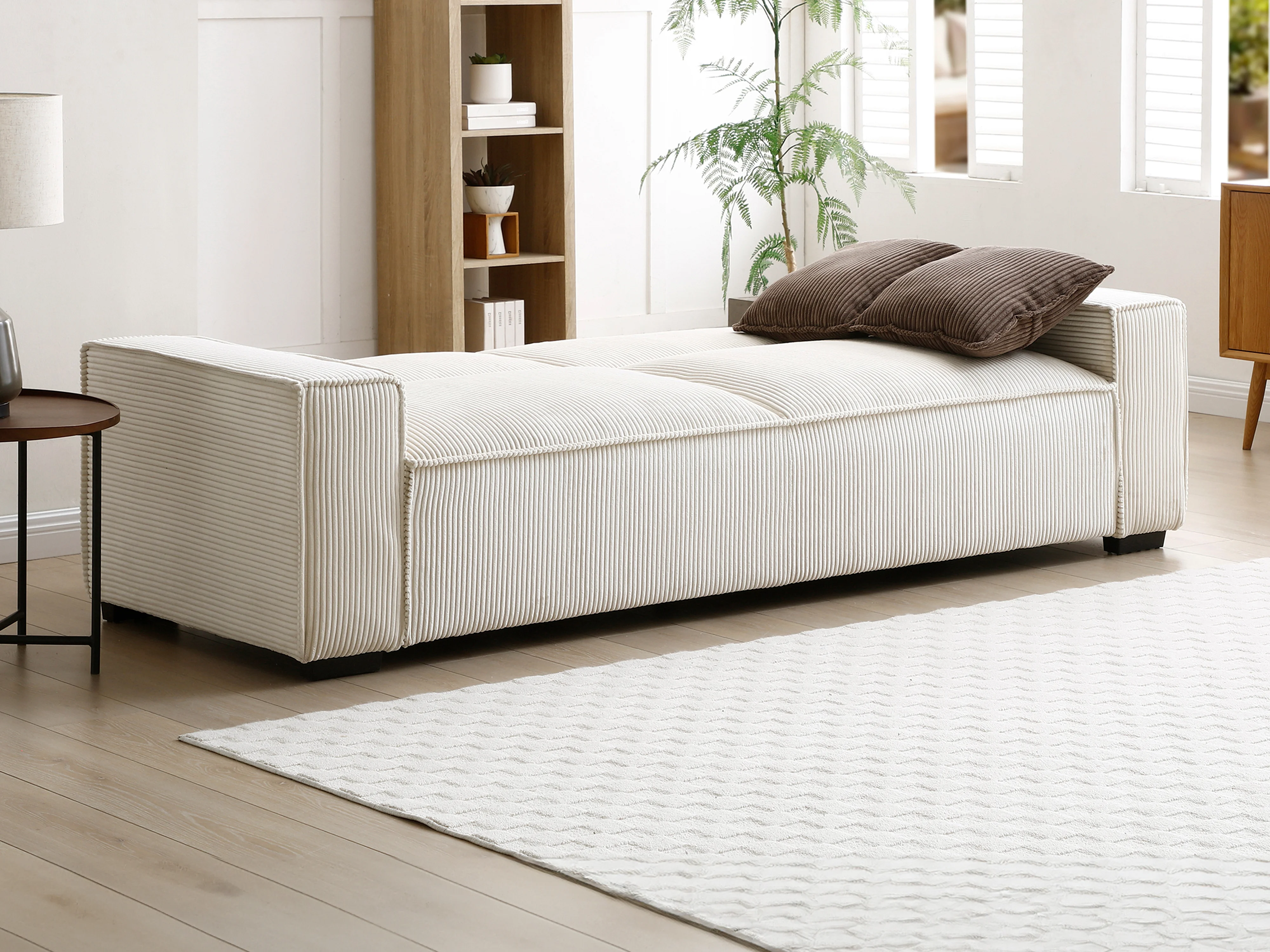Canapé 3 places convertible en velours côtelé beige SEKOTA