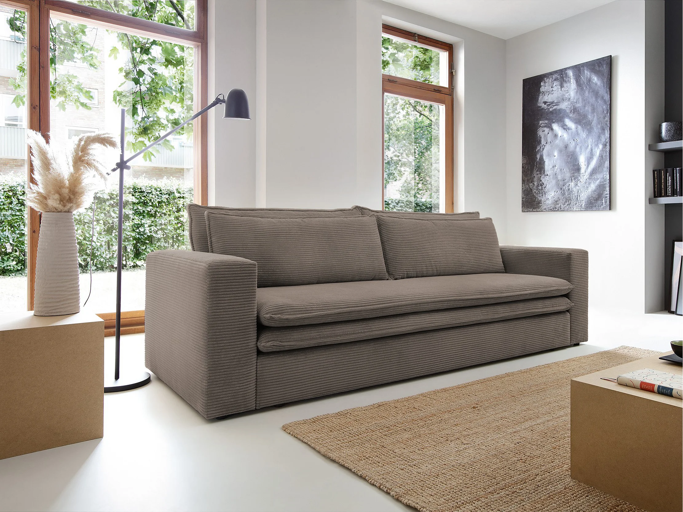 Canapé 3 places convertible en velours côtelé taupe TILIA