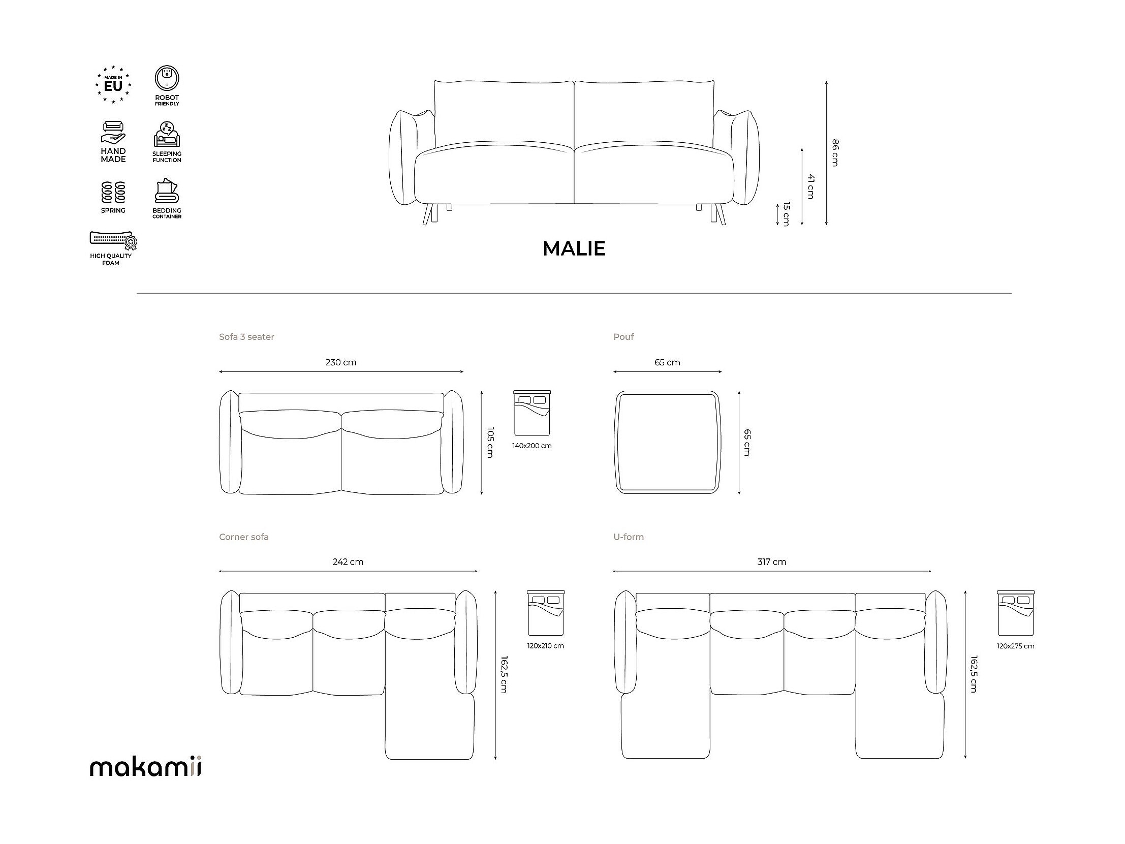 Canapé Dcorv, Canapé conteneur 3 places linéaire, Canapé de salon en tissu rembourré avec ouverture clic-clac, 223x84xh80 cm, Gris