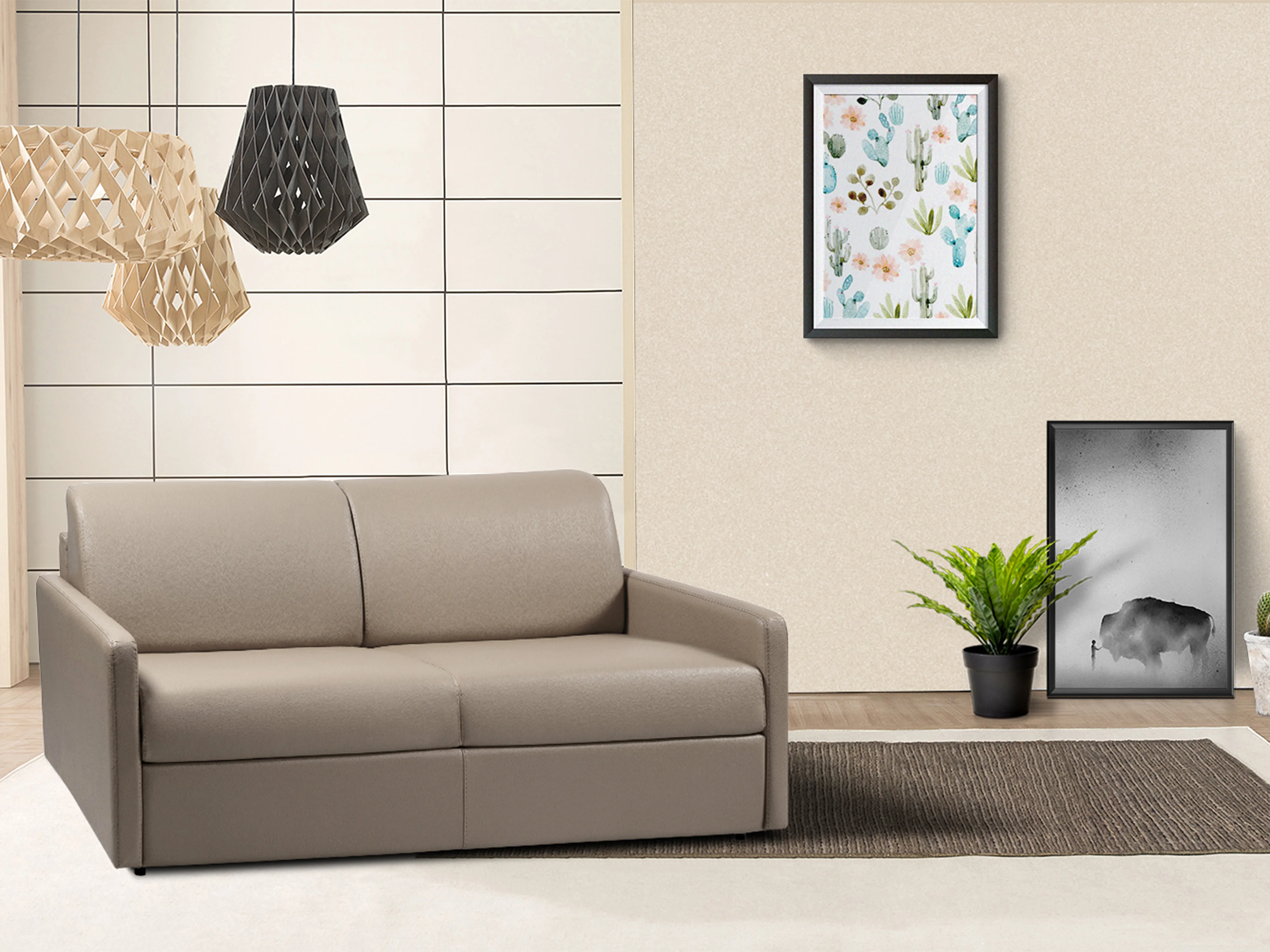 Canapé 3 places convertible express en simili taupe - Couchage 140 cm - Matelas 22 cm avec mémoire de forme CALIFE