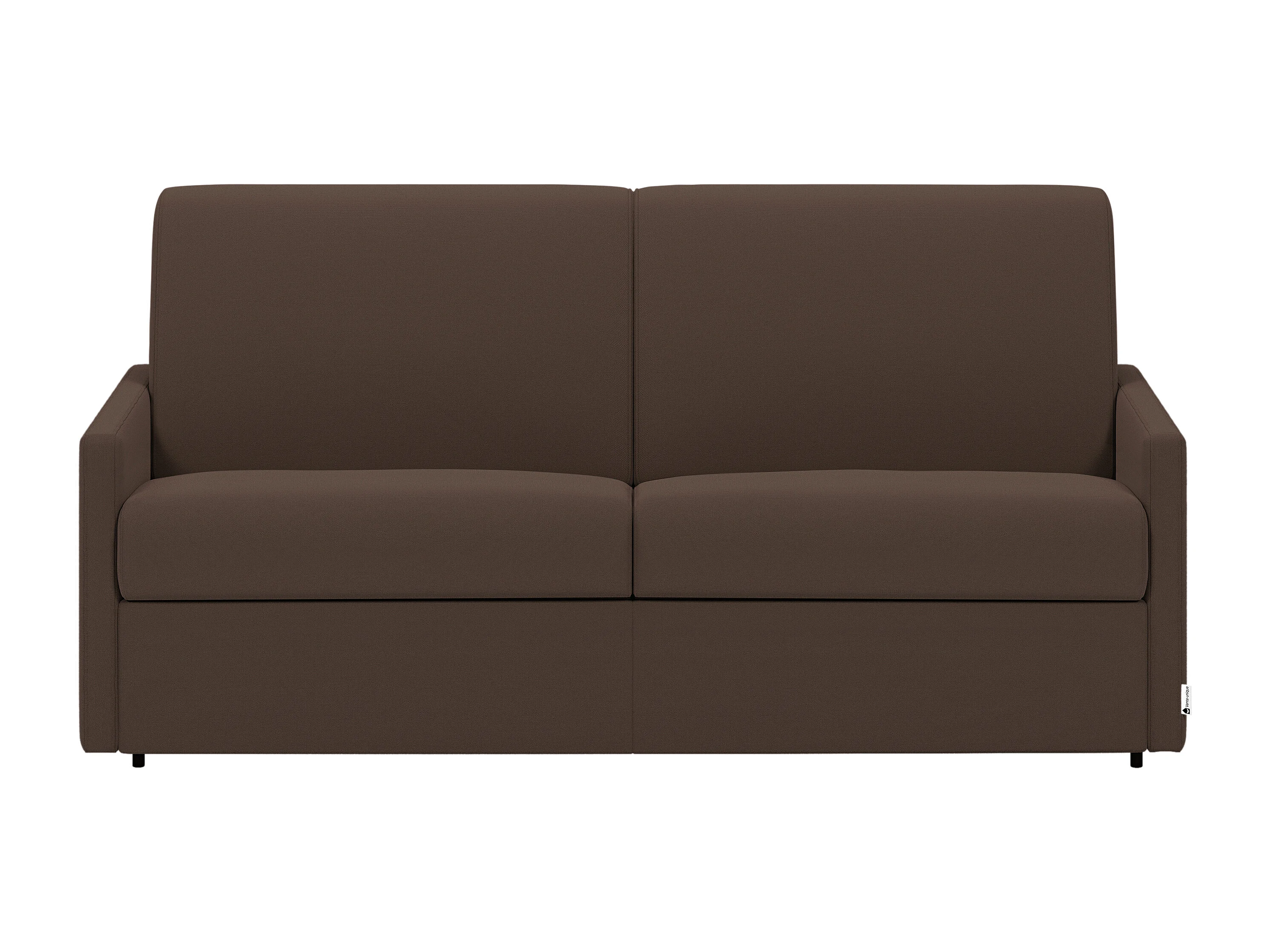 Canapé 3 places convertible express en tissu marron - Couchage à lattes larges 140 cm - Matelas 18 cm CALIFE