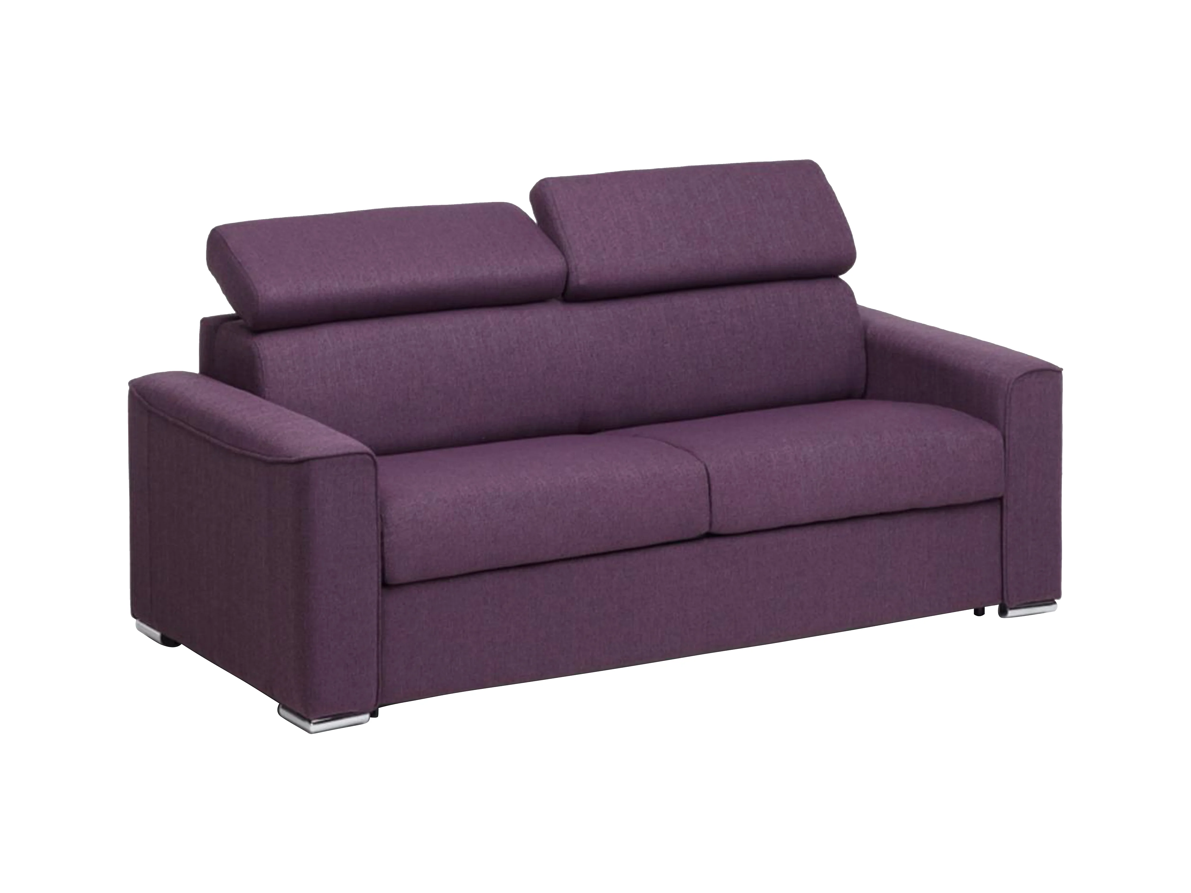 Canapé 3 places convertible express en tissu violet - couchage lattes larges 140 cm - Matelas 18 cm avec mémoire de forme VIZIR