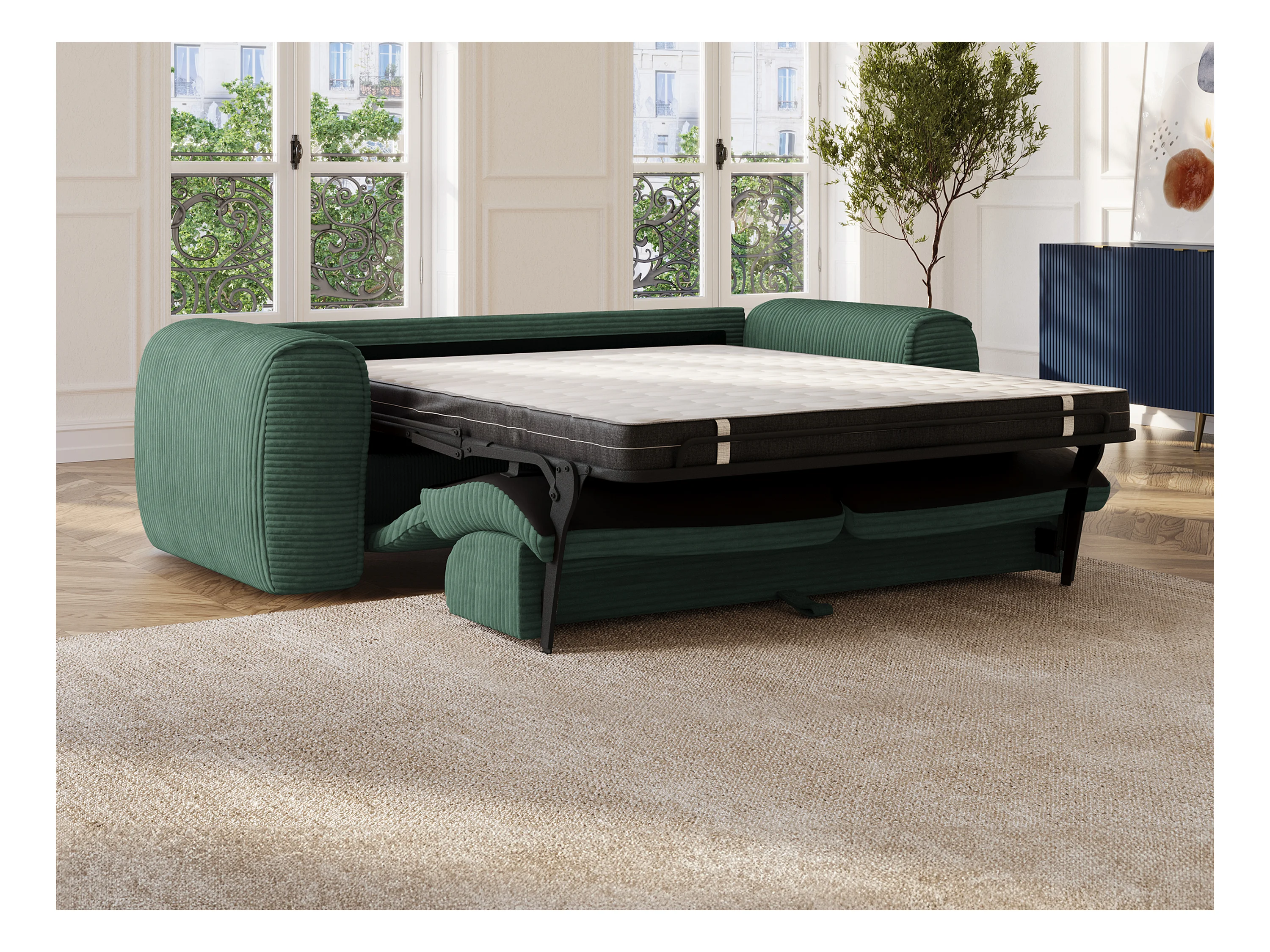 Canapé 3 places convertible express en velours côtelé vert sapin POGNIA