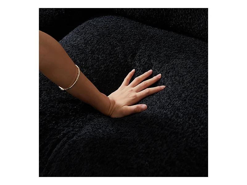 Canapé d'angle 3 places modulaire gauche en tissu bouclette - noir - ALOHA