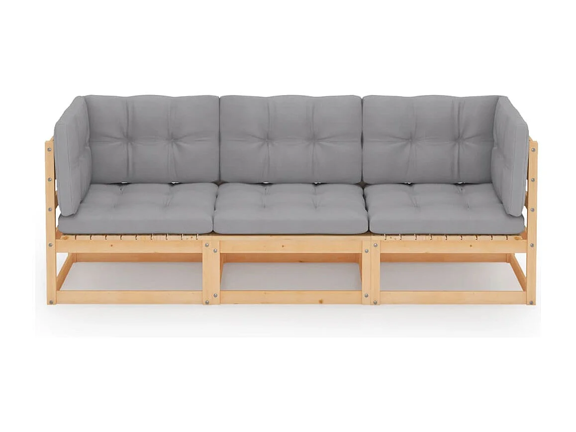 Canapé 3 places de jardin avec coussins Bois de pin massif
