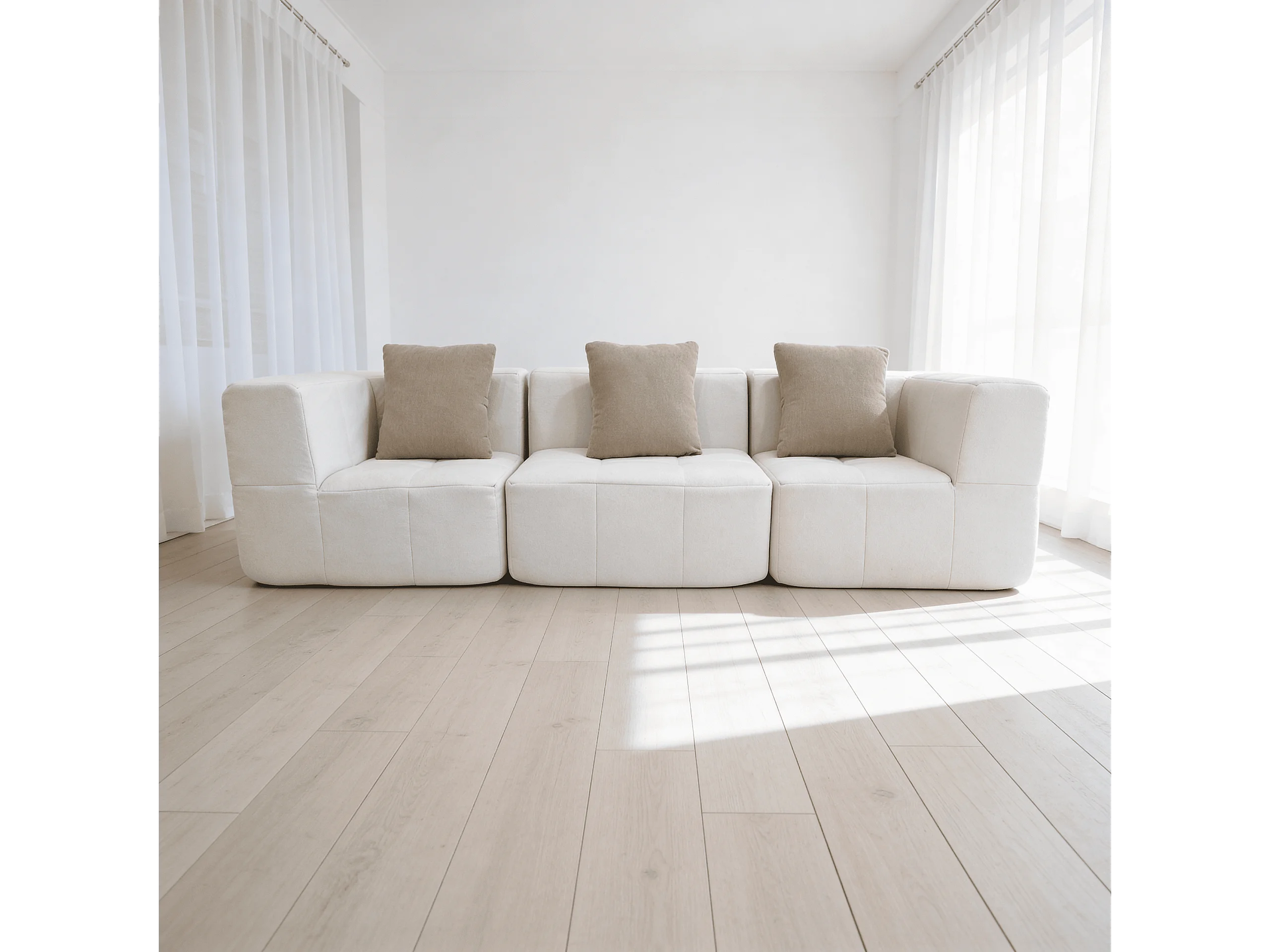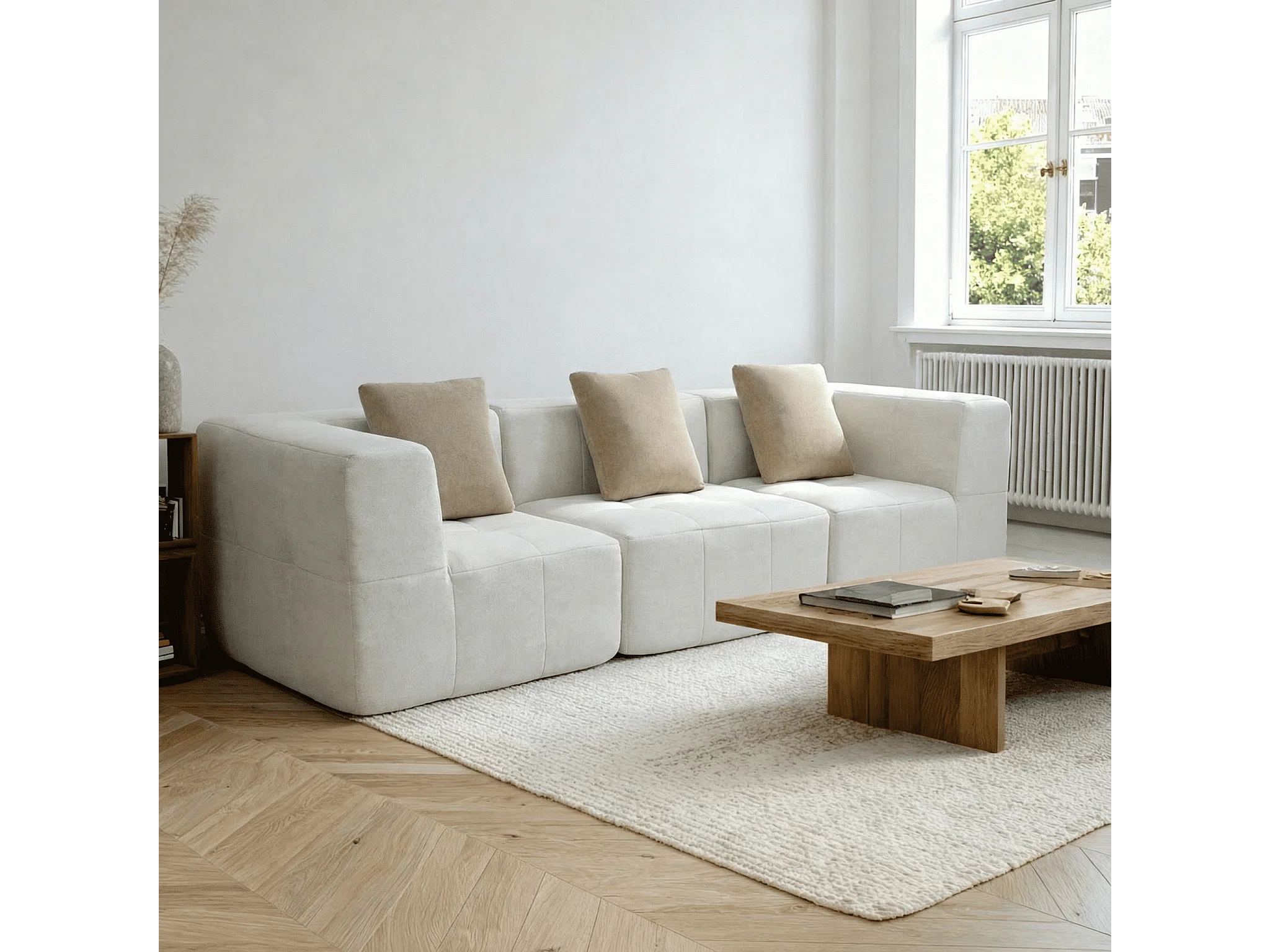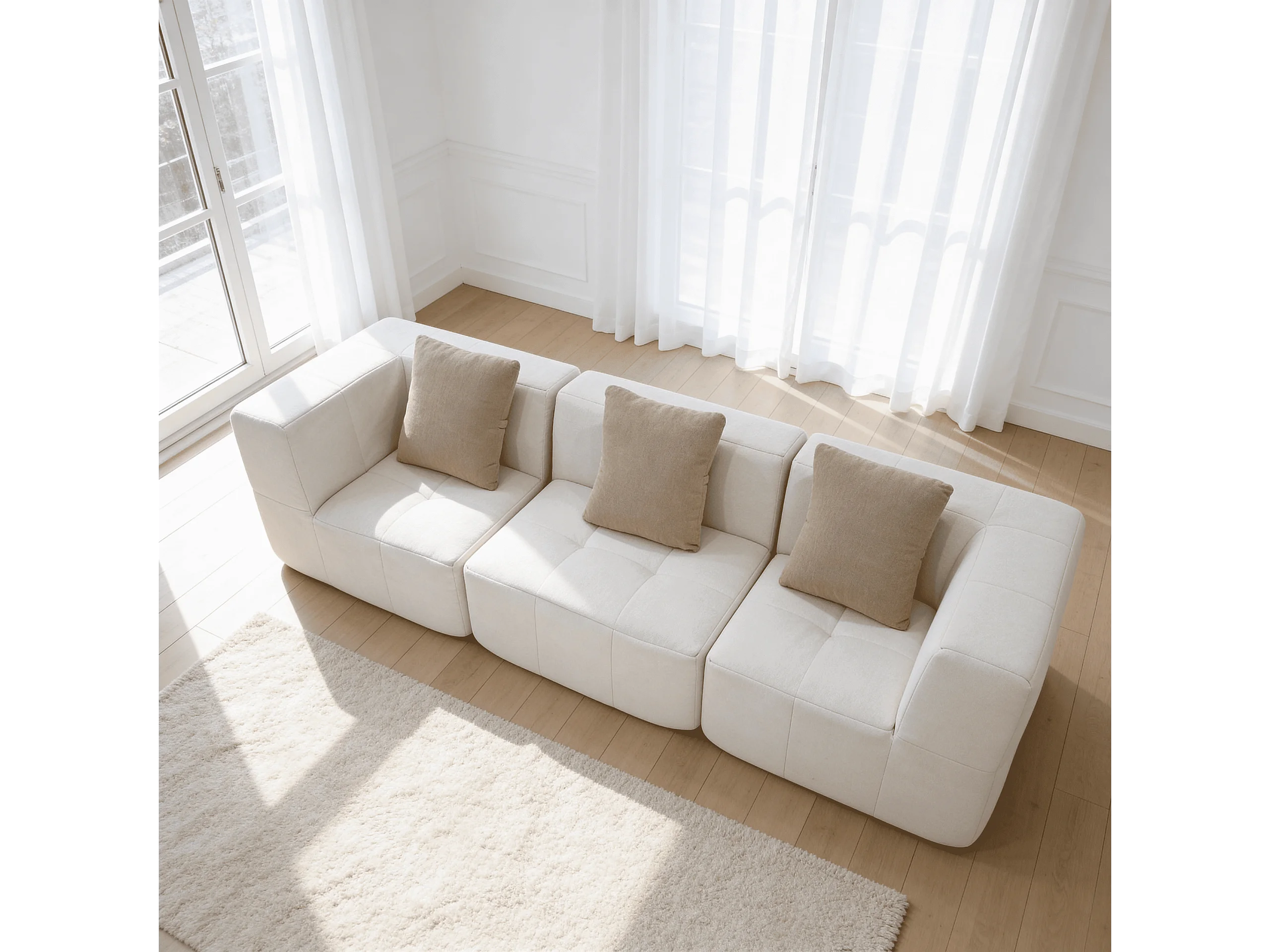 Canapé 3 places Eden Simple en flannelle - Blanc et beige