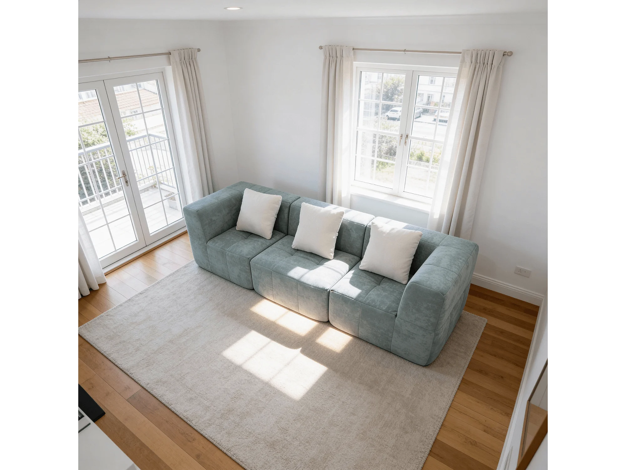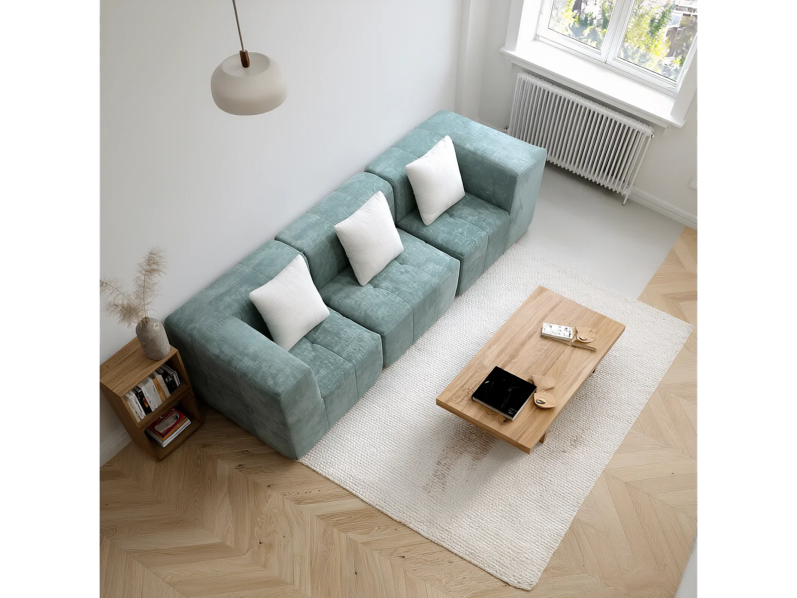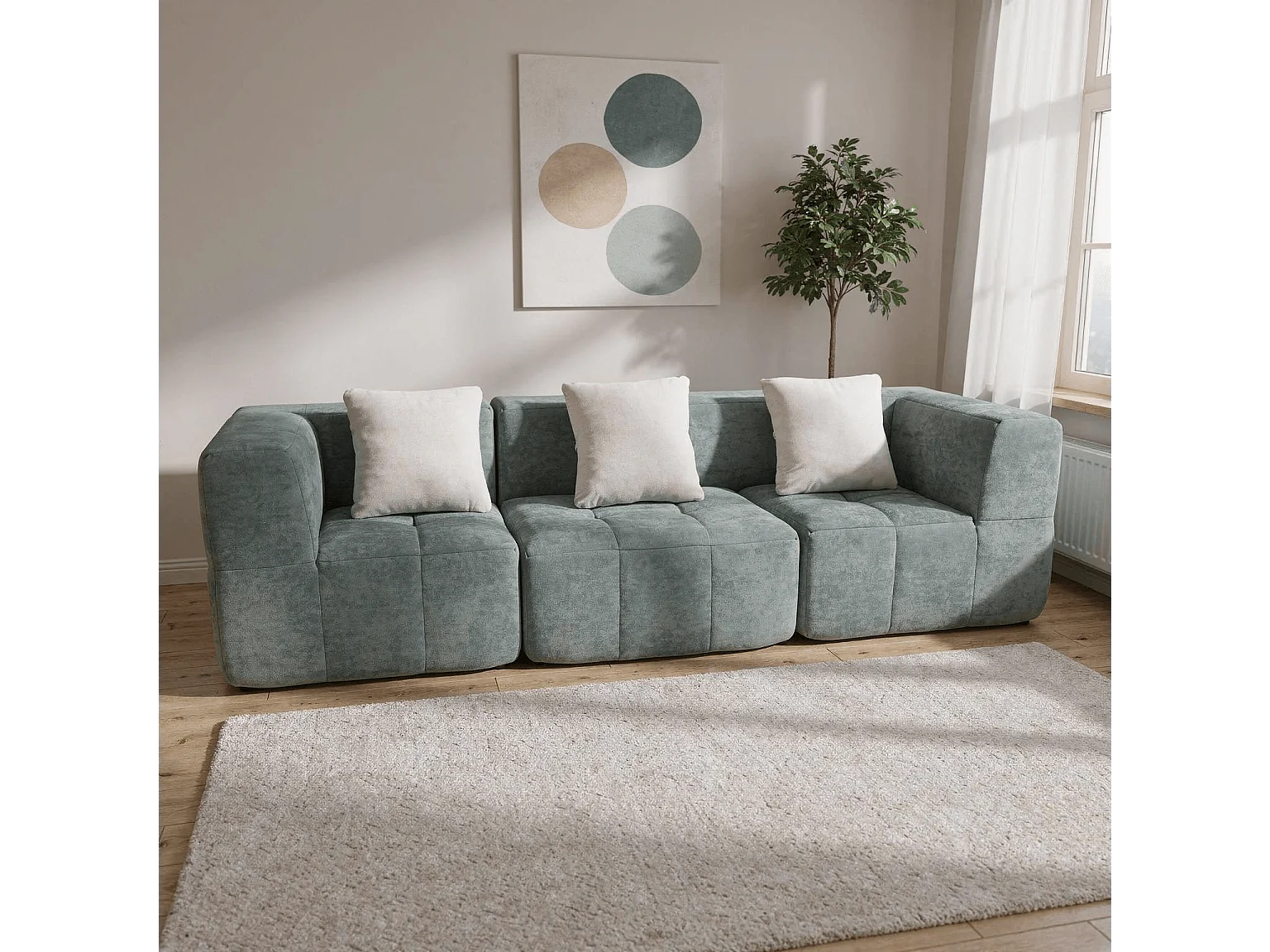 Canapé 3 places Eden Simple en flannelle - Sauge et blanc
