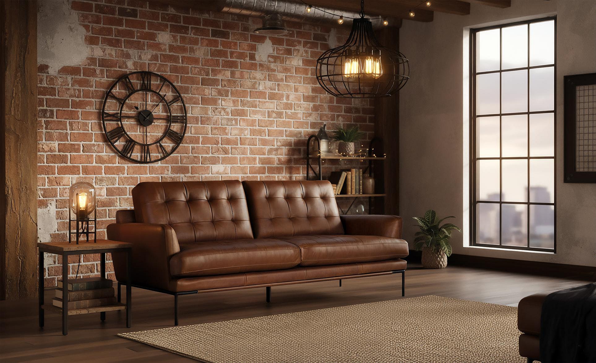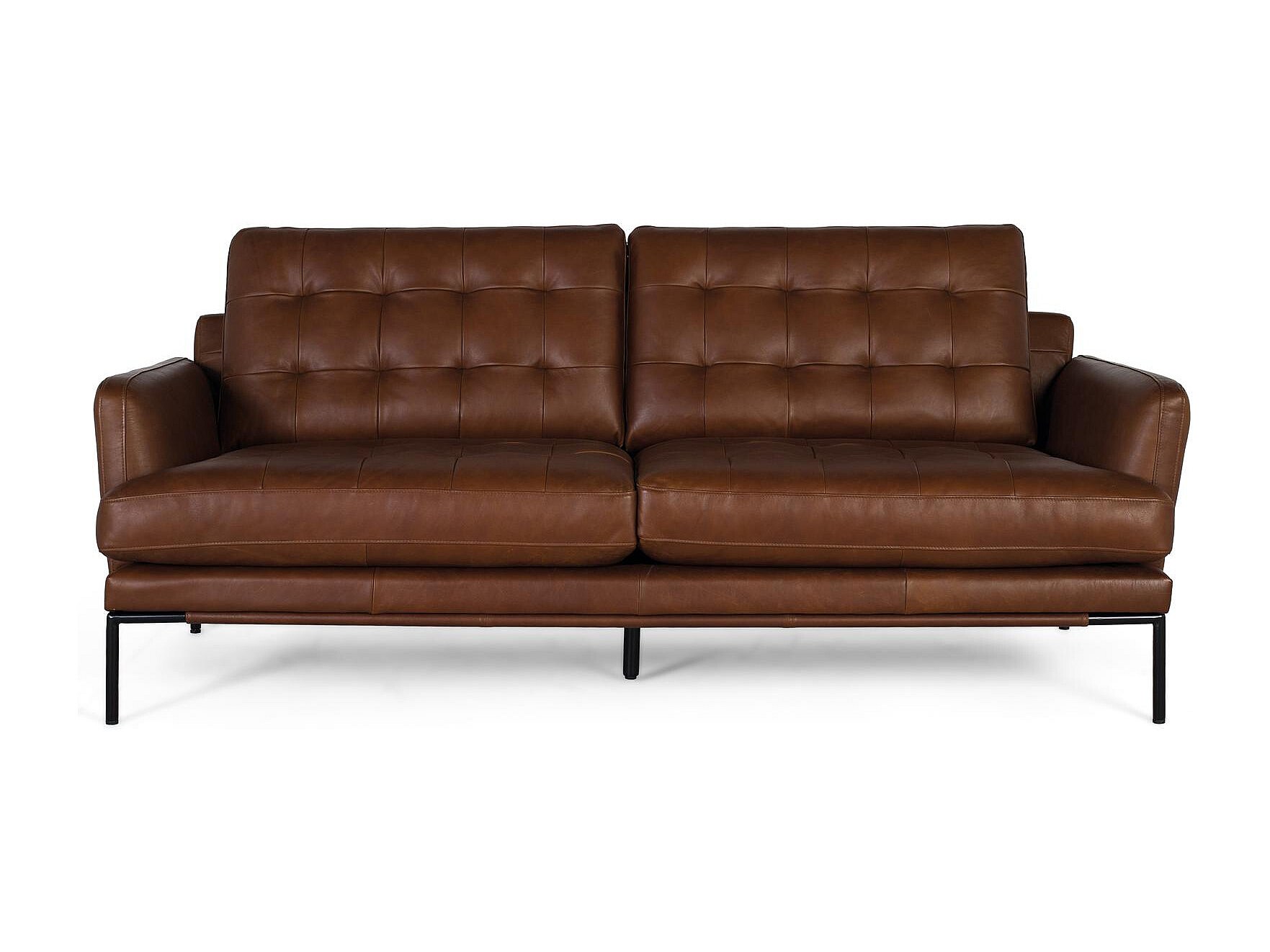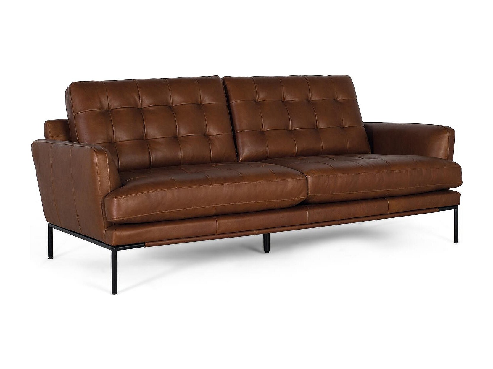 Canapé 3 places en cuir de style vintage avec pieds en métal