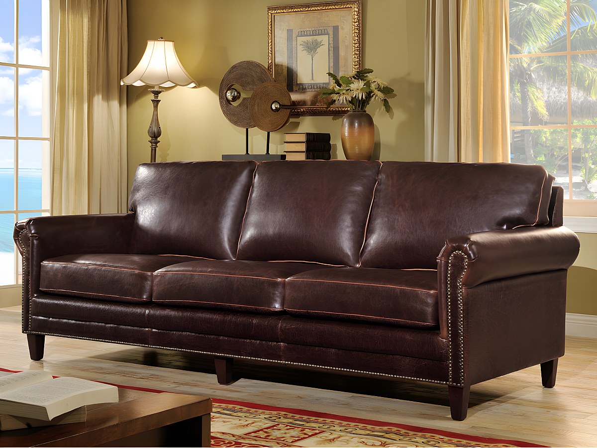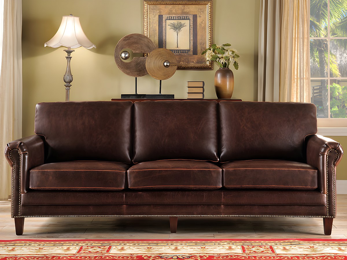 Vous vous laisserez séduire par l’allure vintage de ce salon ! Ce salon a été spécialement conçu pour garantir une authenticité de style grâce à son cuir vieilli couleur chocolat et à sa structure en bois. De plus, les canapés et fauteuil CASSANDRA ont des accoudoirs soigneusement cloutés ce qui apporte une touche d’élégance supplémentaire.