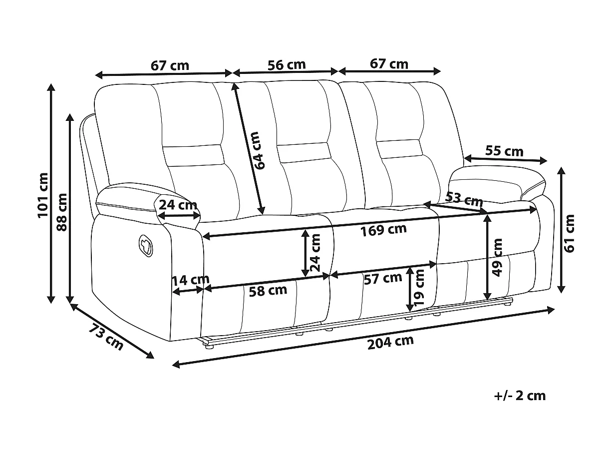 Canapé relax manuel 3 places BERGEN Cuir PU Noir