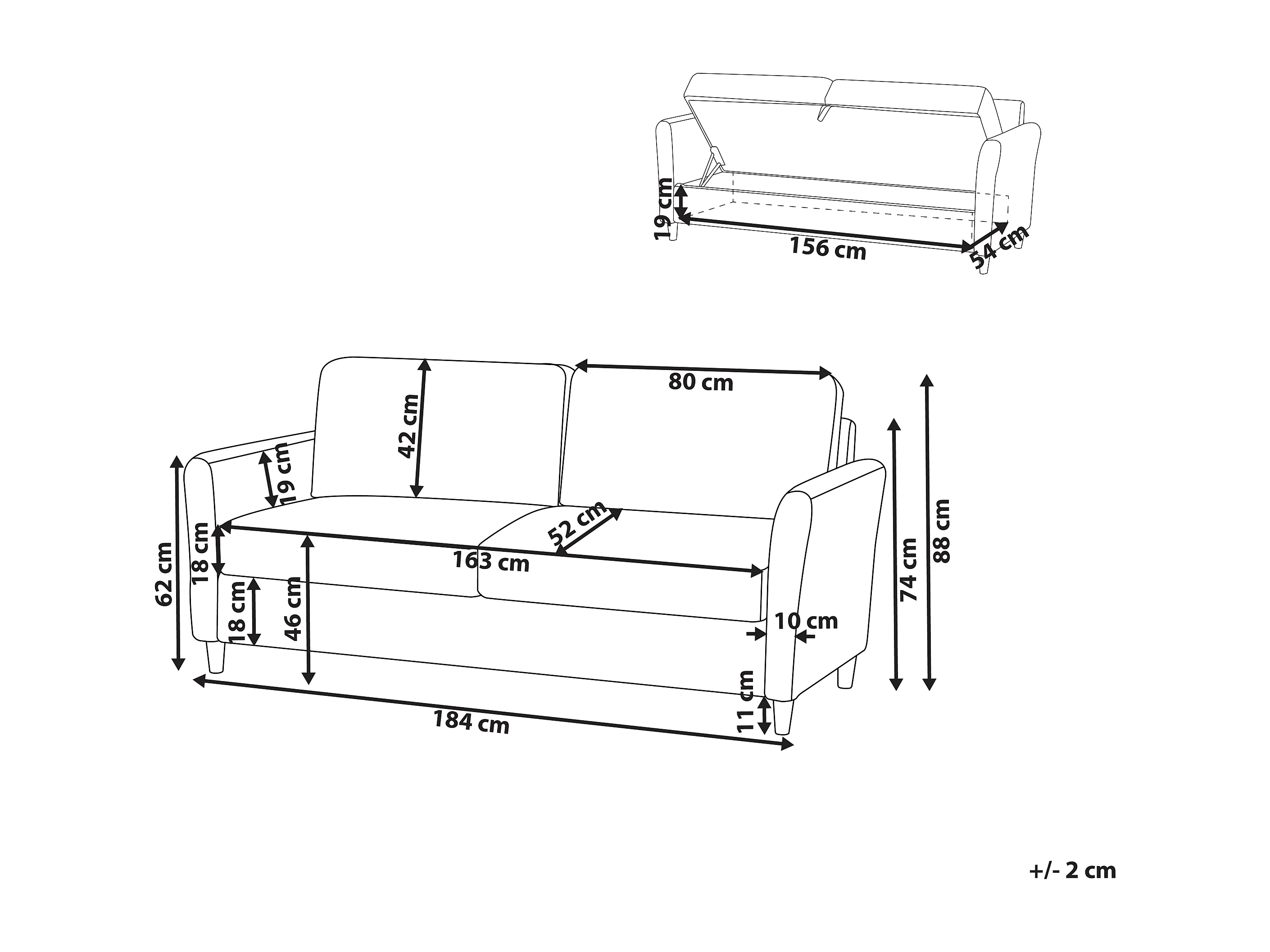 Canapé 3 places MARE Tissu Taupe avec rangement