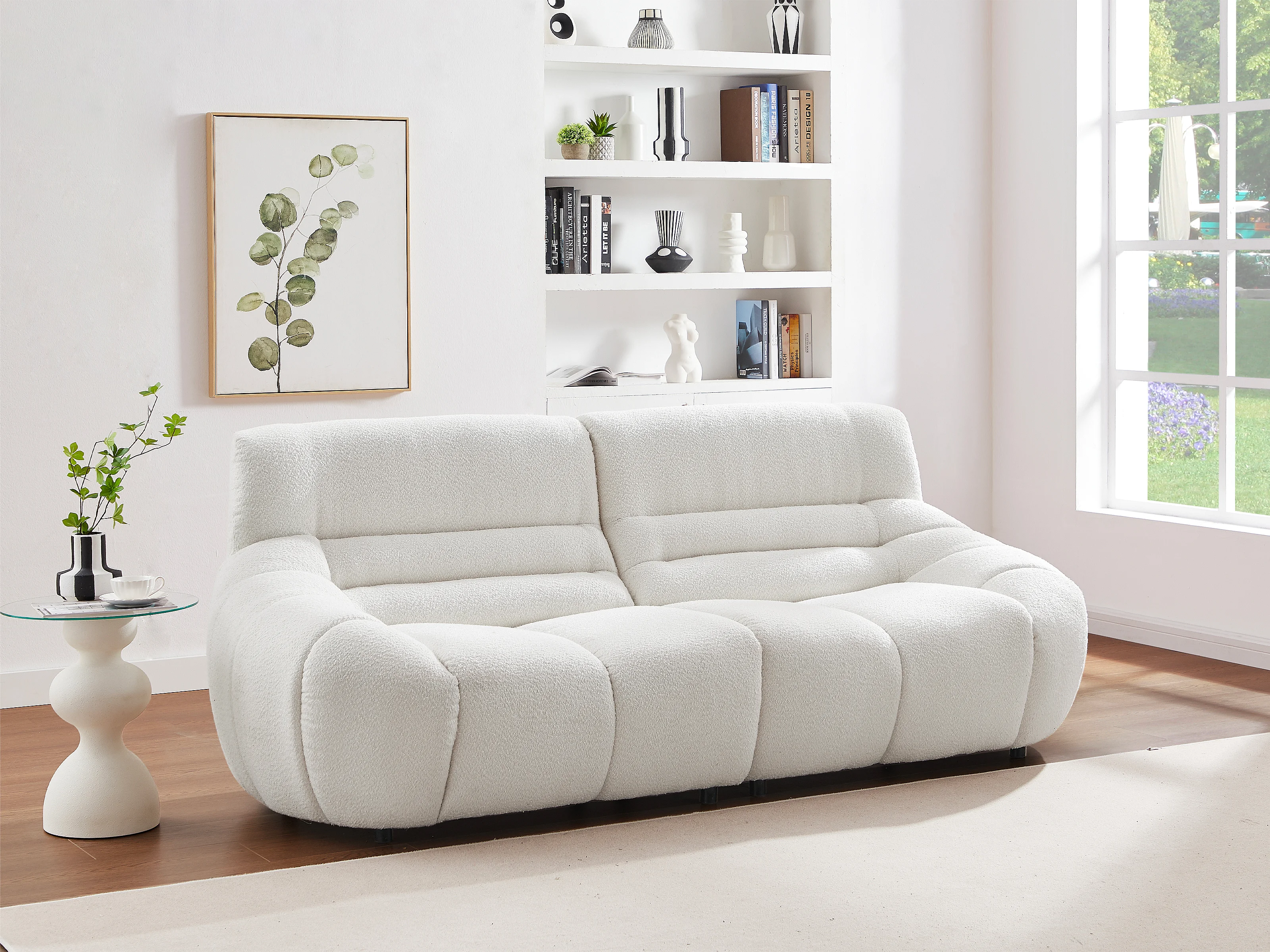 Canapé 3 places en tissu bouclette blanc BOVERA